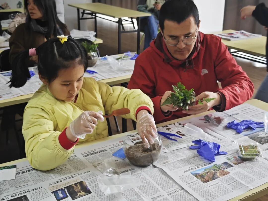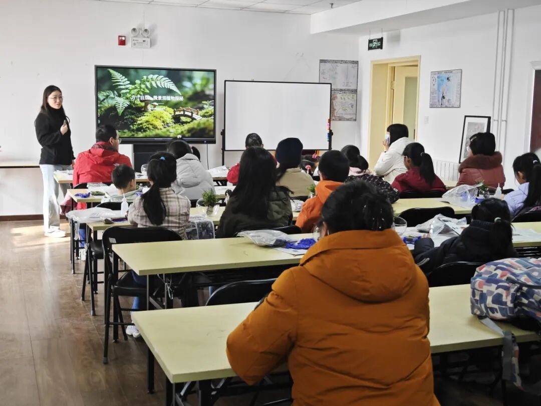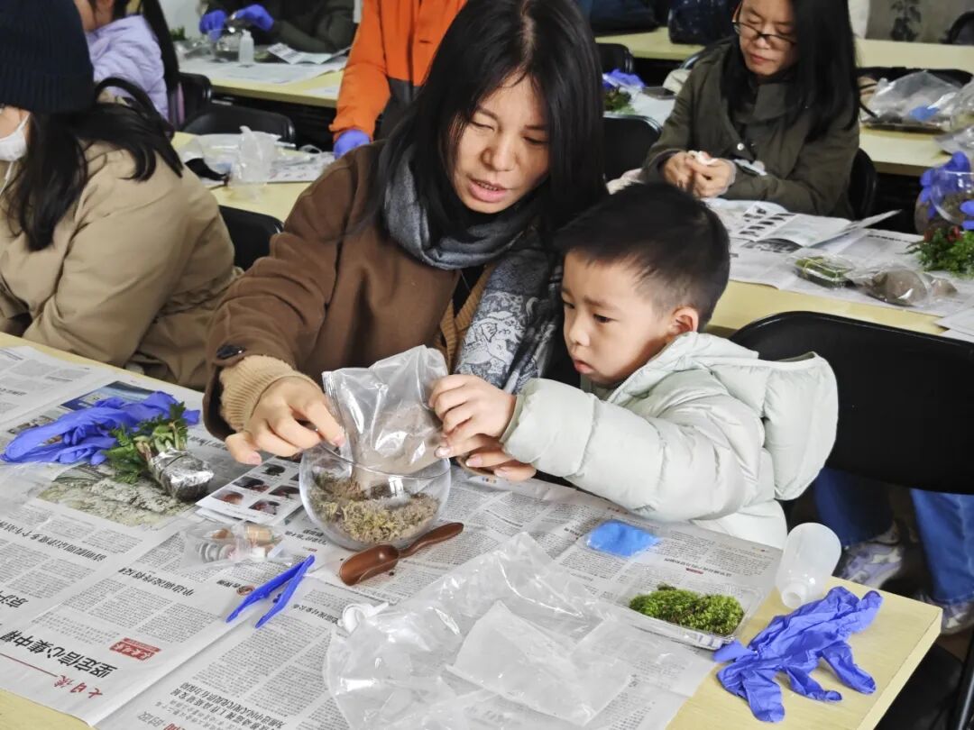 理论知识环节以“微景观植物探秘”为主题,专业老师从微景观概念、生物多样性、植物分类、地理分布、原生状态、种植技巧及养护要点等多个方面为大家进行了介绍与互动问答。大家听得津津有味,互动中小朋友积极踊跃发言,展现出对植物的强烈好奇心,也加深了他们与大自然的情感纽带。