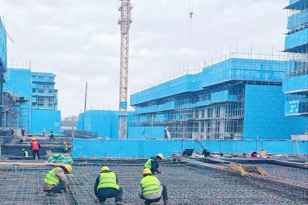 走进北京润园项目施工现场,“保质量、促发展”的标语与忙碌景象相互映衬。高耸的塔吊精准吊运物资,工人绑扎钢筋、浇筑混凝土,工序衔接流畅。项目负责人林春东介绍,目前现场人员已有600人,所有施工班组全部到位,项目建设已全面铺开。