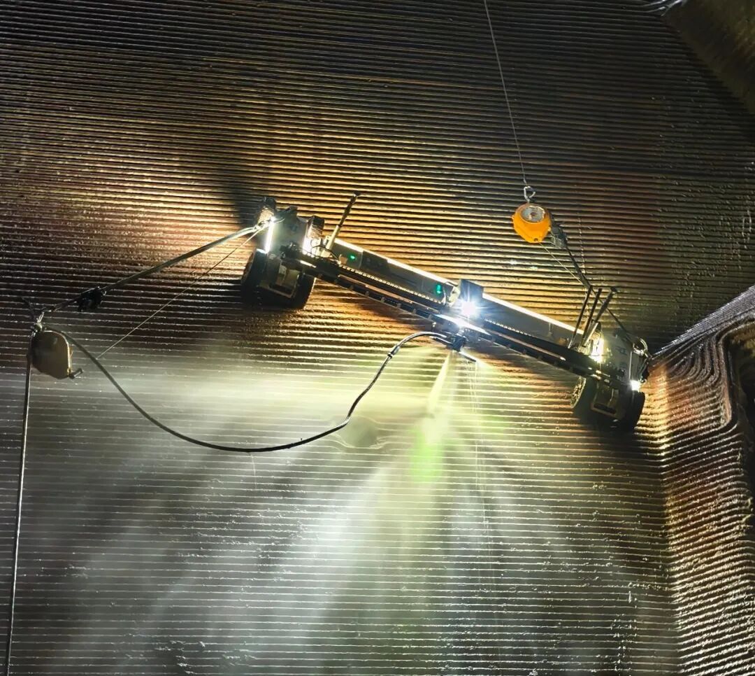 近百米高的锅炉内壁,一台灵巧的机器人如履平地,精准检测、高效清灰一气呵成,全程无需人员进炉膛。