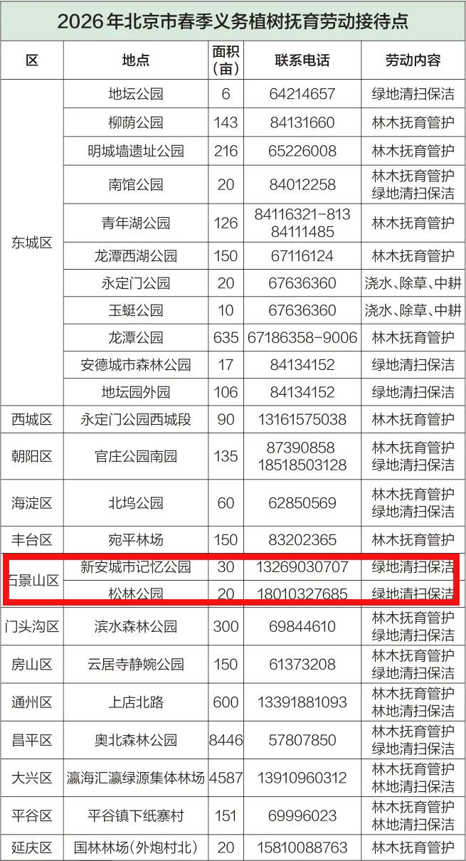 当前,北京正在加快建设花园城市,义务植树是广大市民参与花园城市建设的主要机制和方式。广大市民可依据《首都全民义务植树尽责形式(2025版)》,通过花园场景营建、认种认养、抚育管护、造林绿化、自然保护、设施修建、捐资捐物、志愿服务等8类47种形式,实现全年尽责、多样尽责、方便尽责。首都绿化委员会办公室倡议广大市民参加“身边植绿尽责行动”,积极开展阳台、庭院、屋顶绿化,主动参与社区、村庄、单位绿化美化,以实际行动履行植树义务,携手共建花园城市。