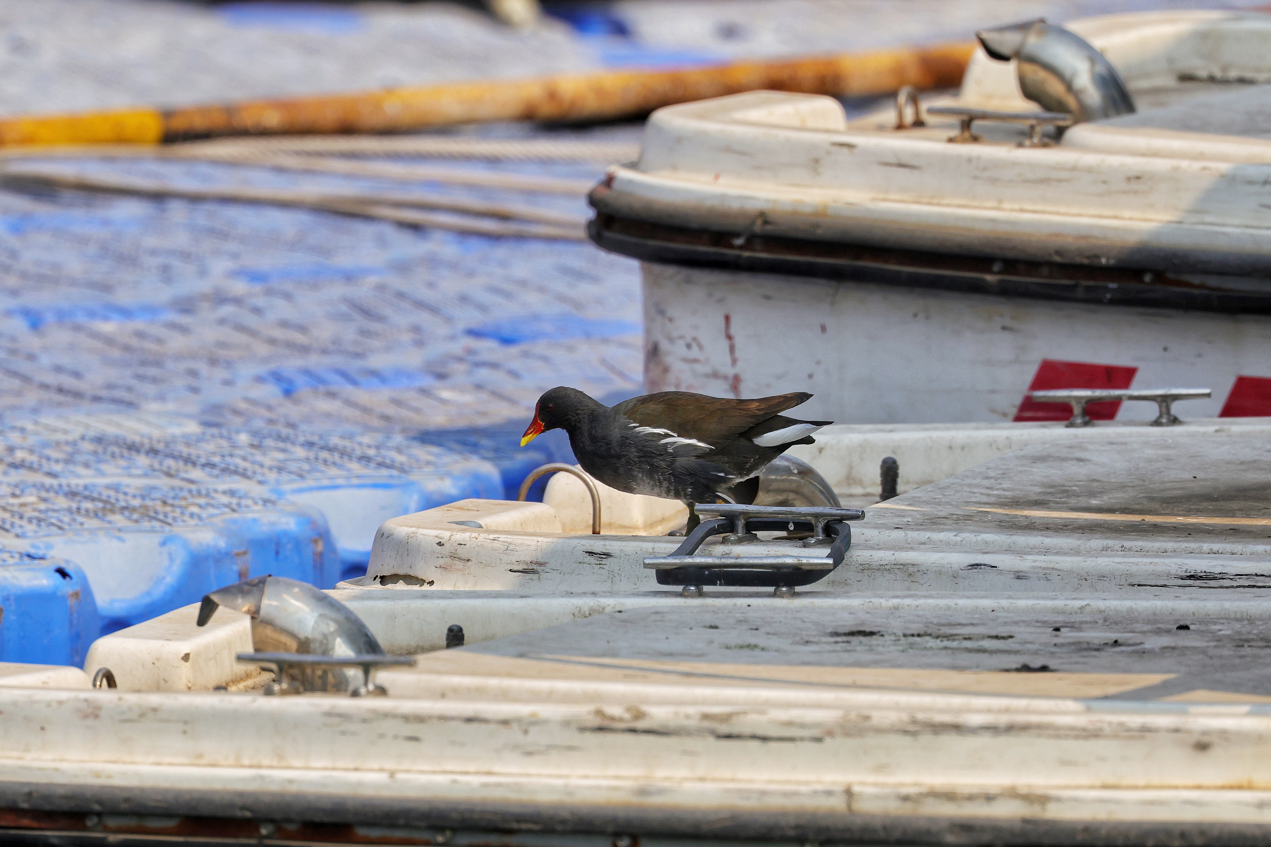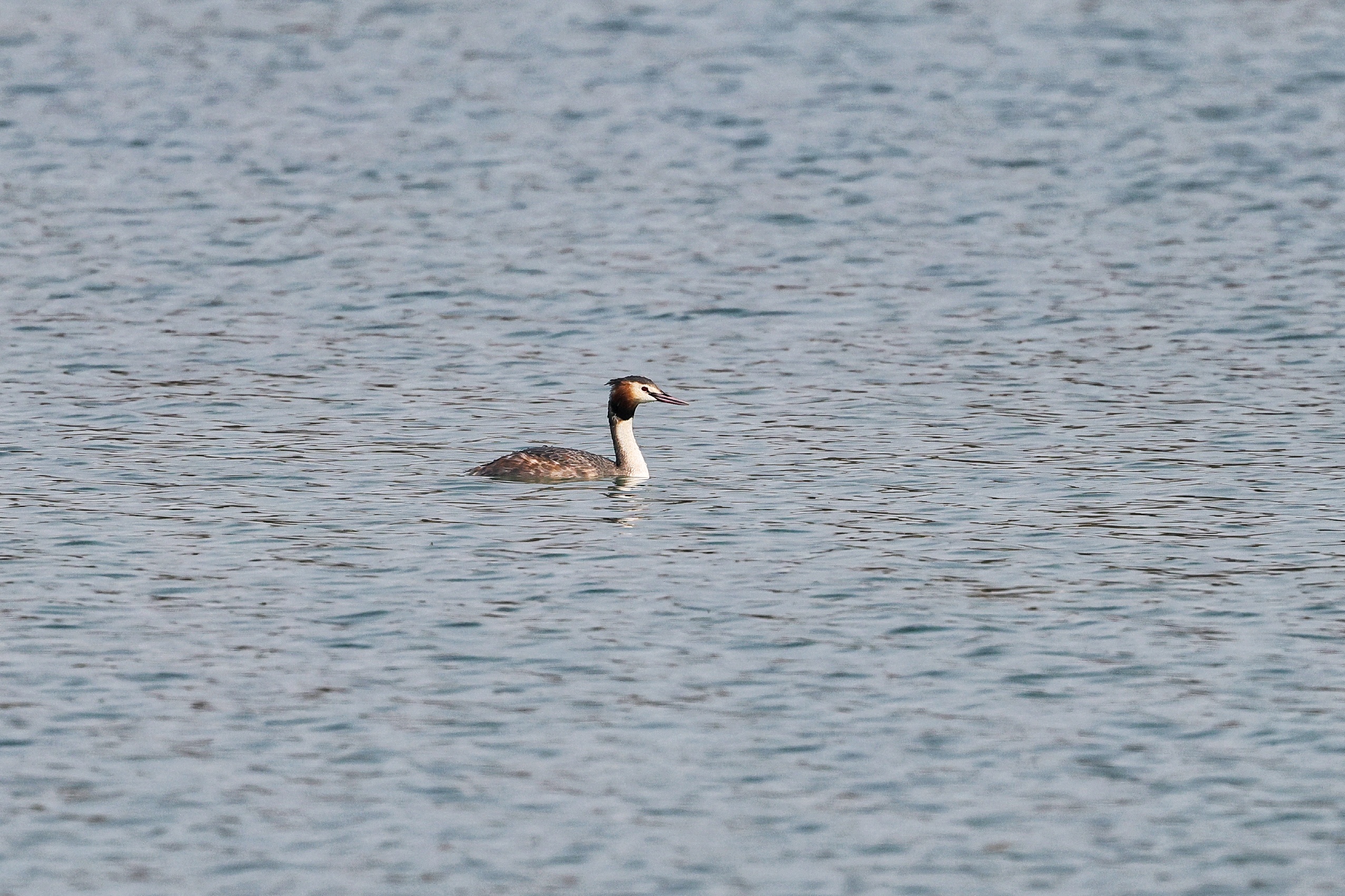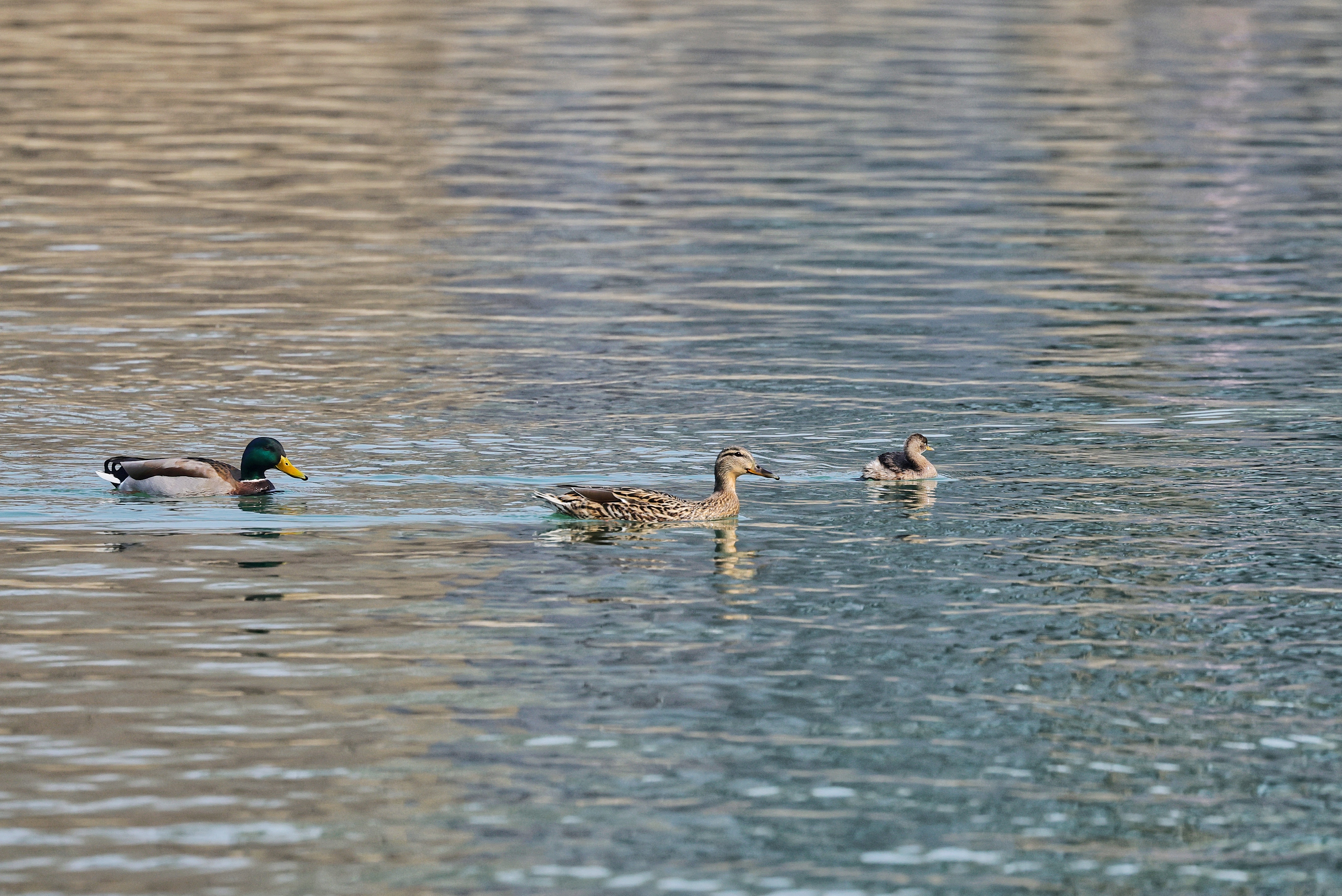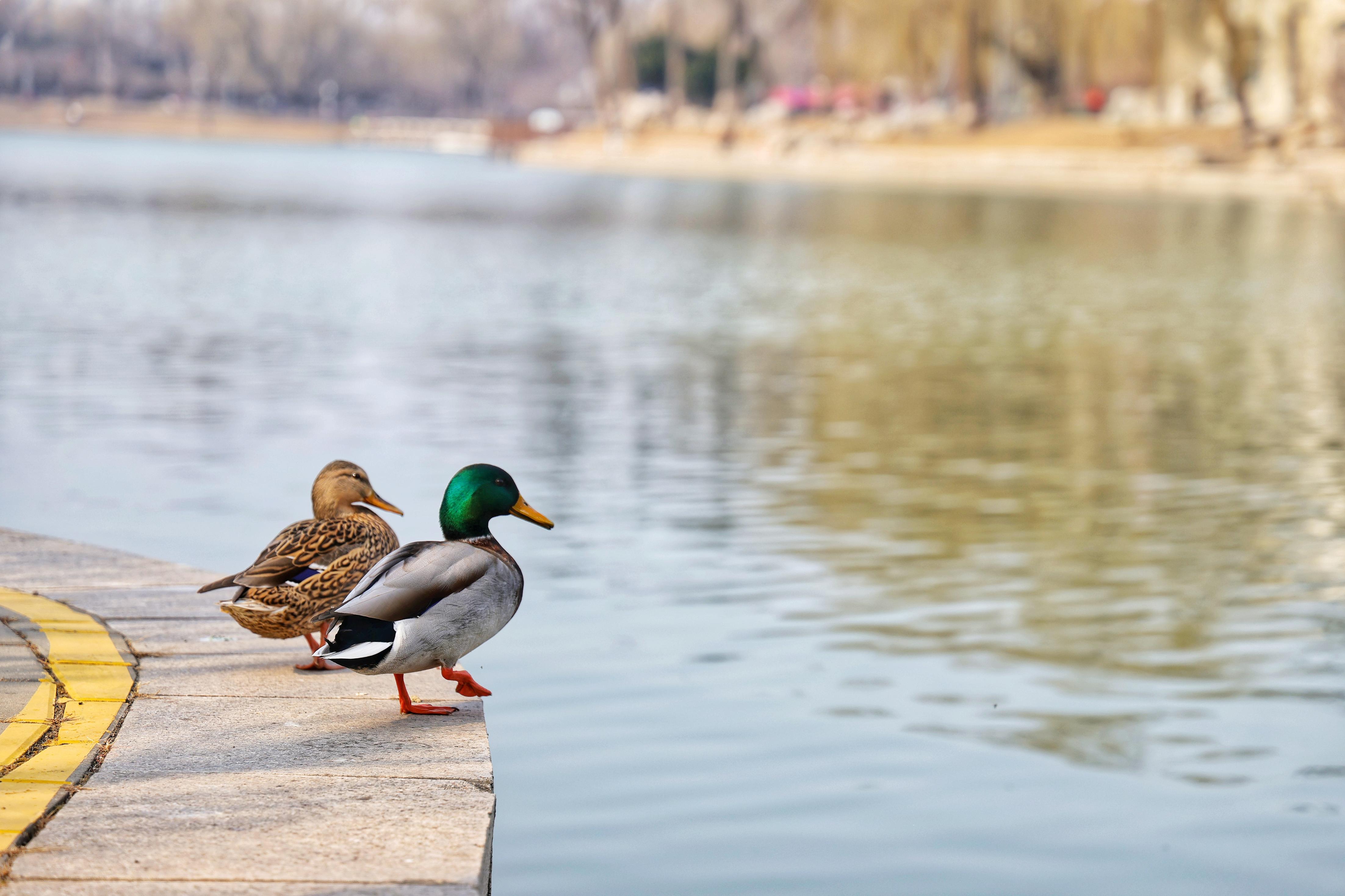 湖面碧波荡漾,成了水鸟的乐园。鸳鸯结对游弋,羽色斑斓;绿头鸭嬉戏其间,激起细碎涟漪;白骨顶自在浮沉,灵动可爱;更有少见的凤头鸊鷉悄然现身,为春日湖景更添几分意趣。