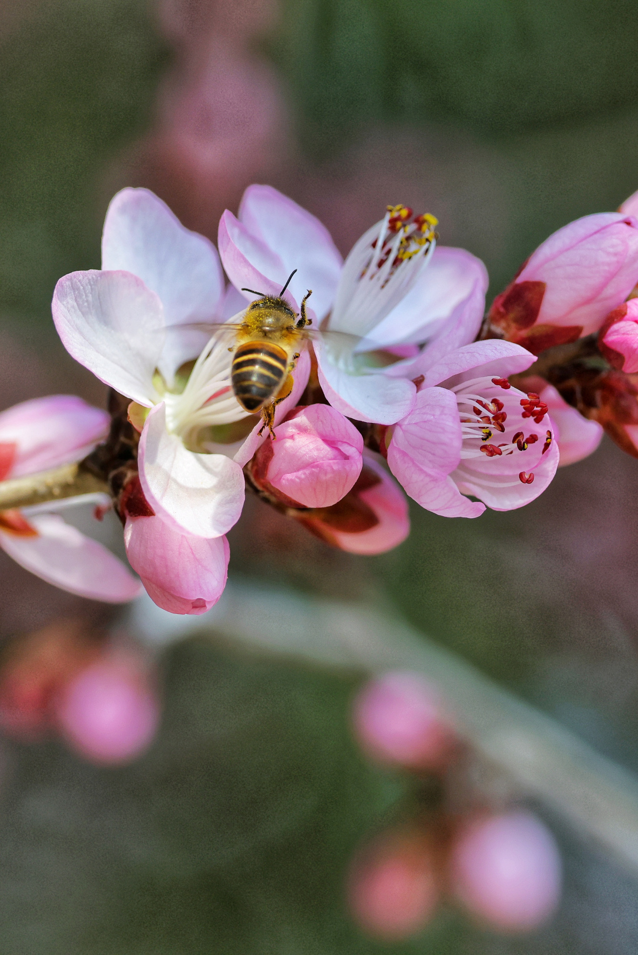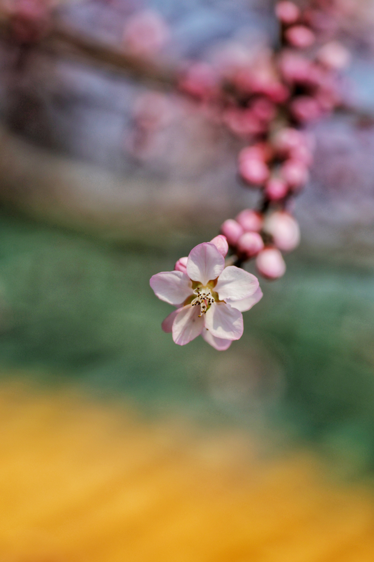 粉白的山桃堆满枝头,花瓣轻颤,映着澄澈天光。