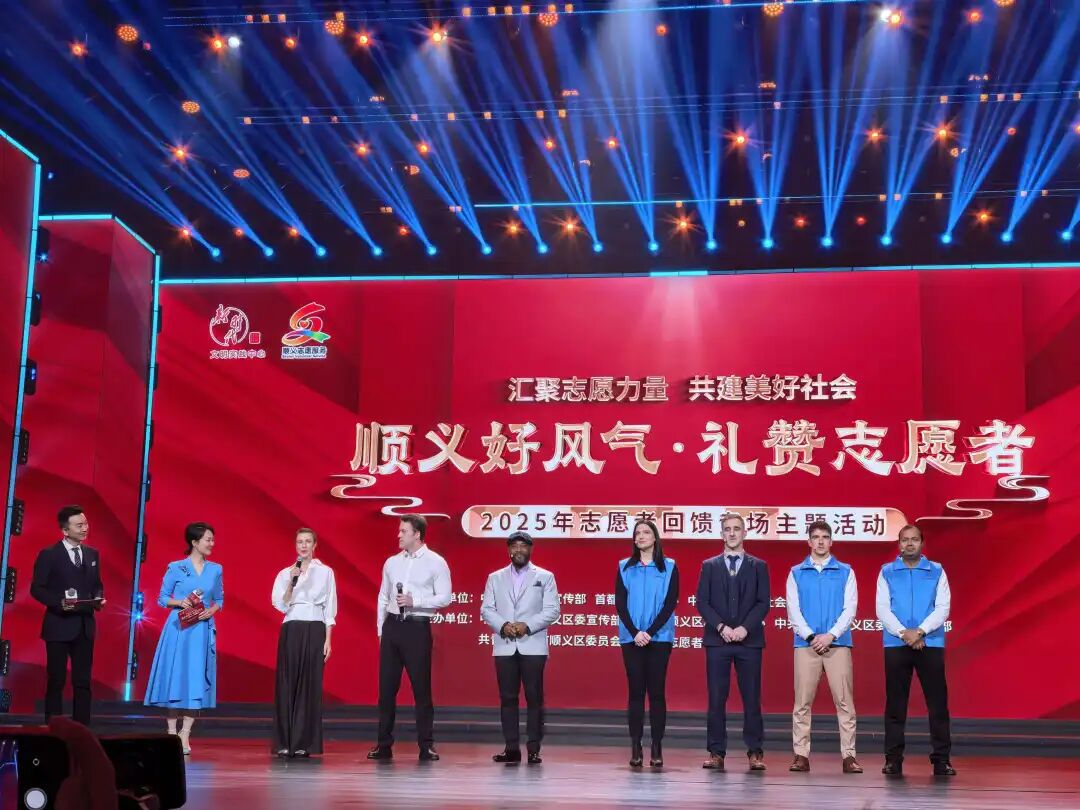 在顺义区志愿者回馈演出中,王墨迪作为外籍志愿者代表登台发言。他真挚地表达了对志愿精神的感悟:“志愿服务是世界通用的语言,能让每一位异乡人真正融入这里。”他的精彩表现赢得了全场最热烈的掌声,也让更多人看到了志愿精神跨越国界的强大力量。