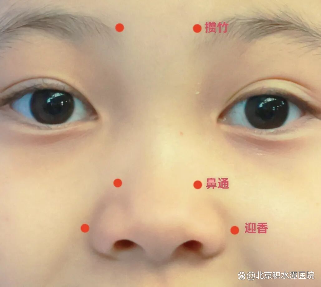 攒竹穴:眉头凹陷中。缓解鼻痒、眼痒,对过敏性结膜炎有辅助治疗作用。