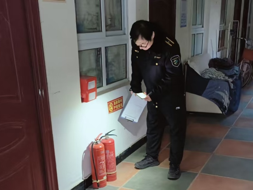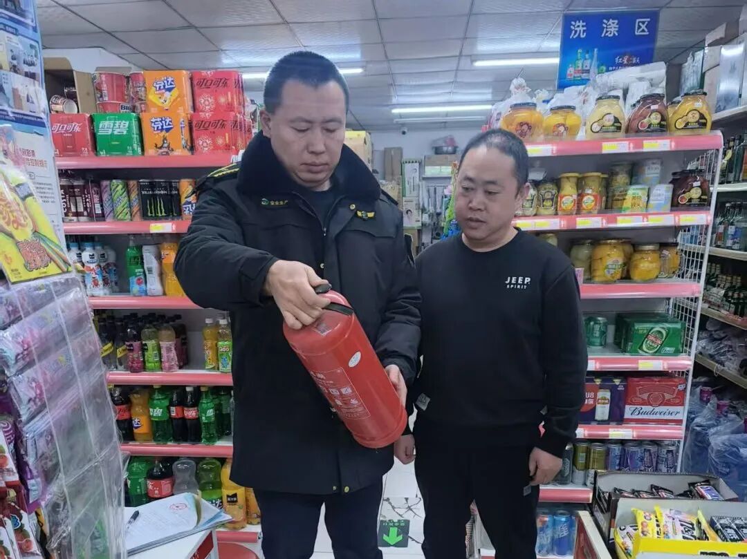 检查组走进“九小场所”,对灭火器、消防栓等器材进行全覆盖“体检”,仔细确认设施完好有效,并督促经营商户落实主体责任,做好日常维护保养,守牢经营安全底线。