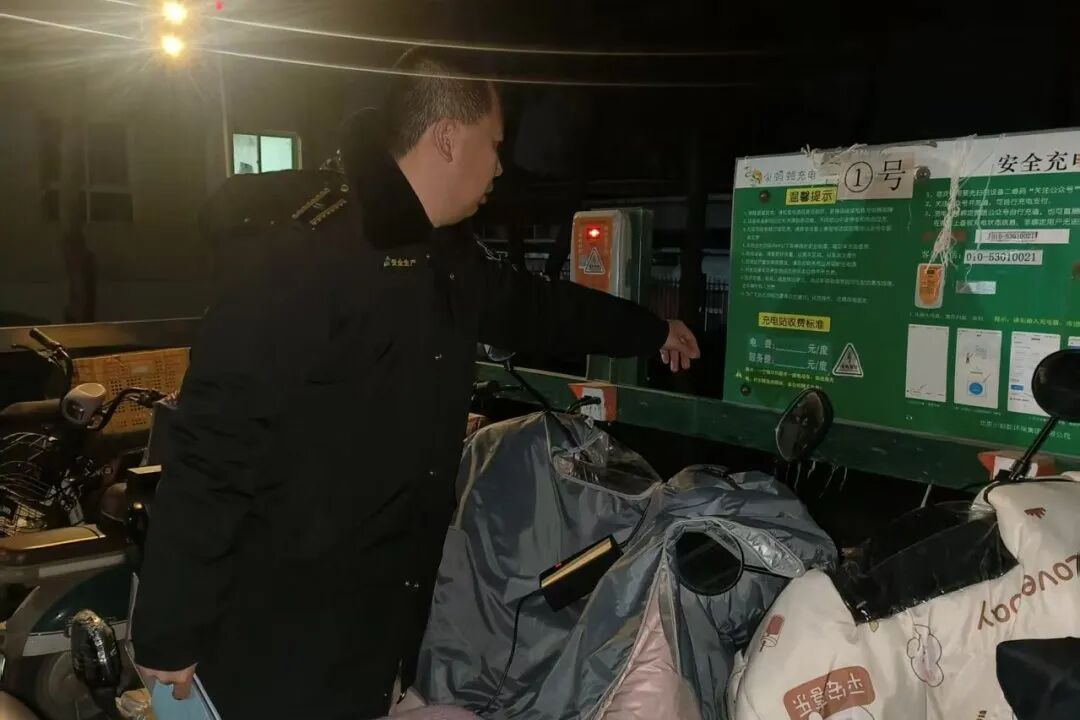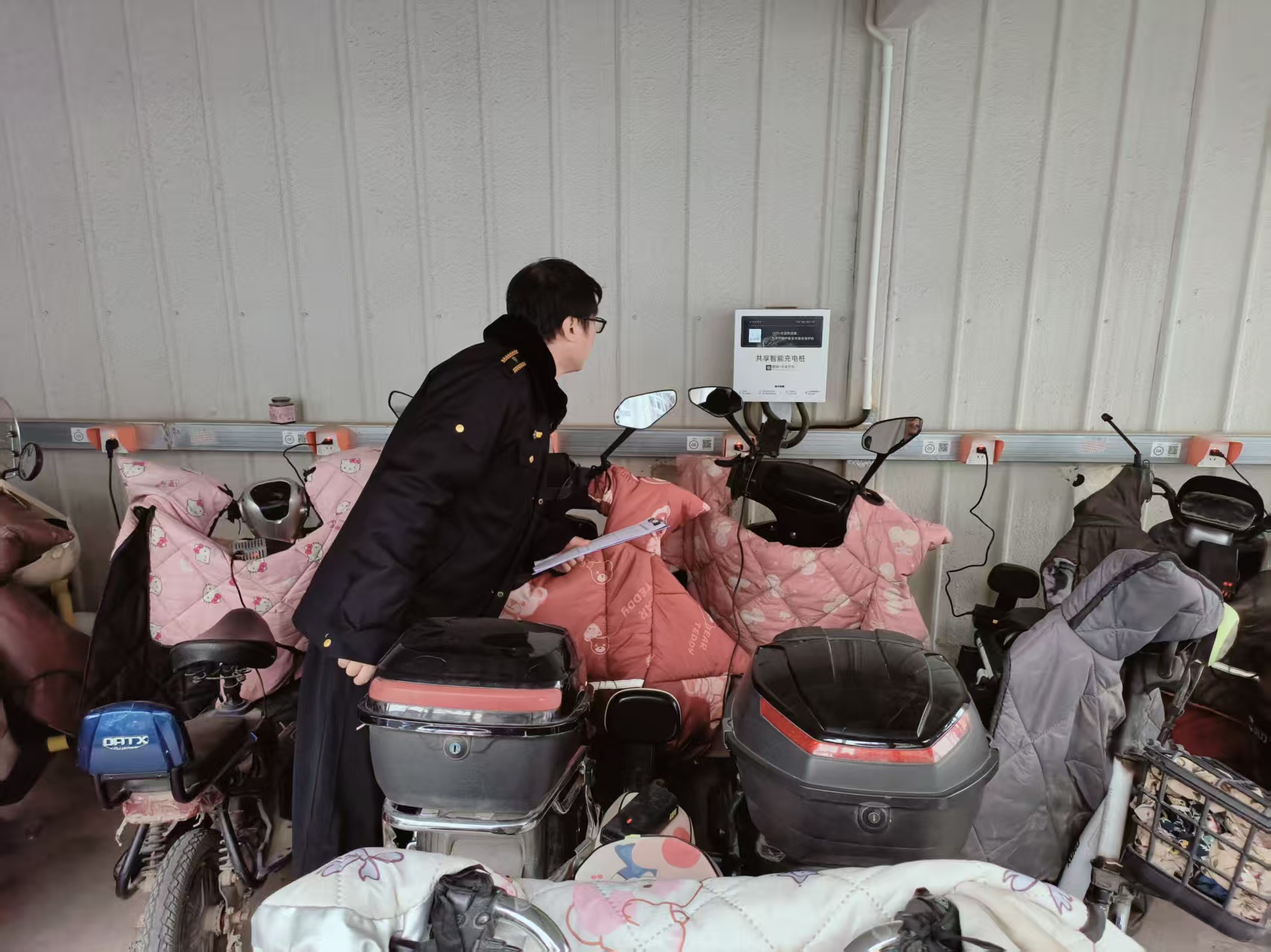 在电动自行车棚,检查人员逐一核查充电线路与设备运行状况,重点整治私拉乱接、“飞线充电”等违规行为,坚决从源头掐灭火灾隐患。