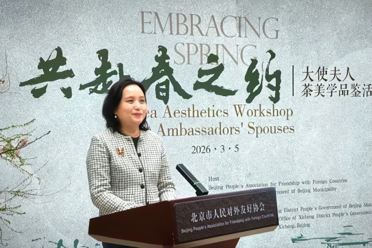 西城区副区长杜洪悦表示,西城区是北京建城肇始之地,孕育了独具魅力的茶文化。马连道作为“中国茶叶第一街”,正依托深厚底蕴推动传统茶产业向数字化转型,全力打造“中国数据街”,诚挚邀请各位大使夫人常来西城,到广安门外街道马连道走一走,感受传统与现代融合的独特魅力。