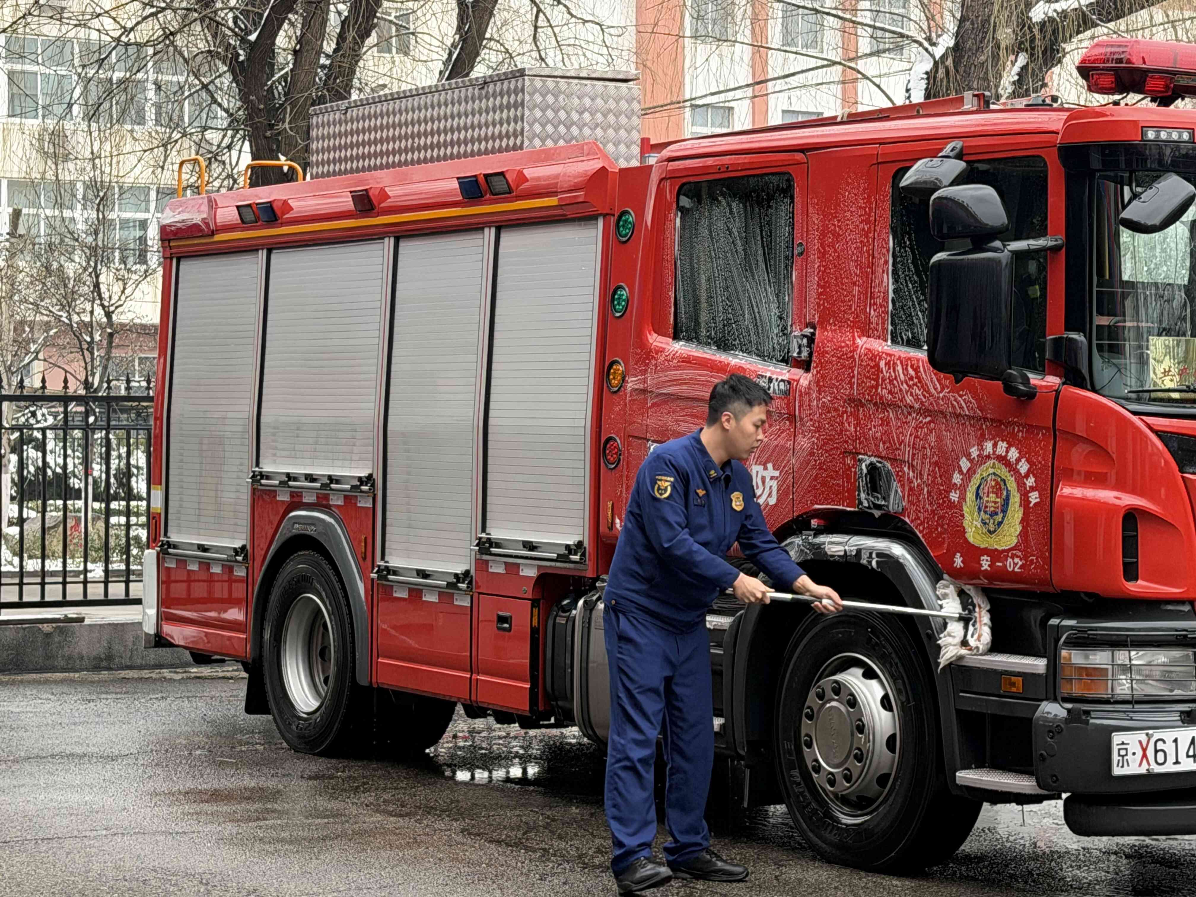 从抢险救援的生死战场,到守护平安的平凡岗位,徐鹏始终在努力扩展他的能力边界。如今,徐鹏利用空余时间考取了B2驾驶证,又成为一名消防车驾驶员。他钻研车辆操作,熟悉辖区路线,做好供水保障,成为一线战斗员的坚实后盾。