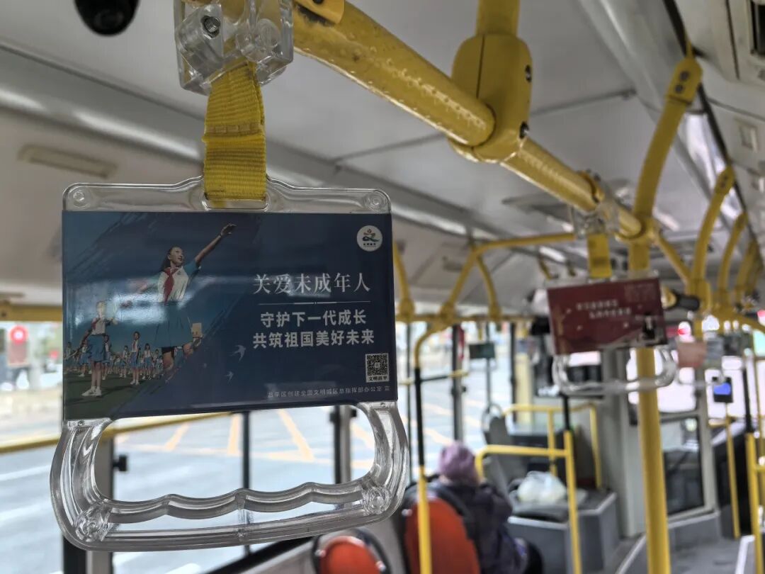 同时,昌平区超额完成公交车身公益广告投放任务,196台公交车的车身两侧,均张贴着“创建全国文明城区”“文明有礼”等醒目宣传内容。这些穿梭在城市街巷的公交车,不仅是便捷的出行载体,更成为一道道流动的“文明风景线”,将文明理念传递到城市的每一个角落。车厢内部的宣传也同样细致入微。在260台公交车的车内扶手上,投放了涵盖文明交通、礼让斑马线等十余类主题的公益广告,设计简洁、内容易懂,让乘客在随手触碰、低头可见间,就能感受到文明的熏陶,让文明出行的种子在潜移默化中生根发芽。