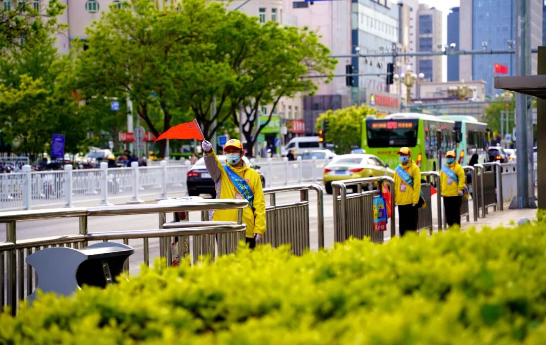 早高峰的鼓楼南街,白实线内非机动车整齐归位,行人耐心等候红灯。回天地区的路口,身穿荧光绿马甲的引导员挥动旗子,护送老人安全通过斑马线。公交车身流动的公益广告、共享单车开关锁时的语音提示,让文明理念在不经意间入耳入脑。