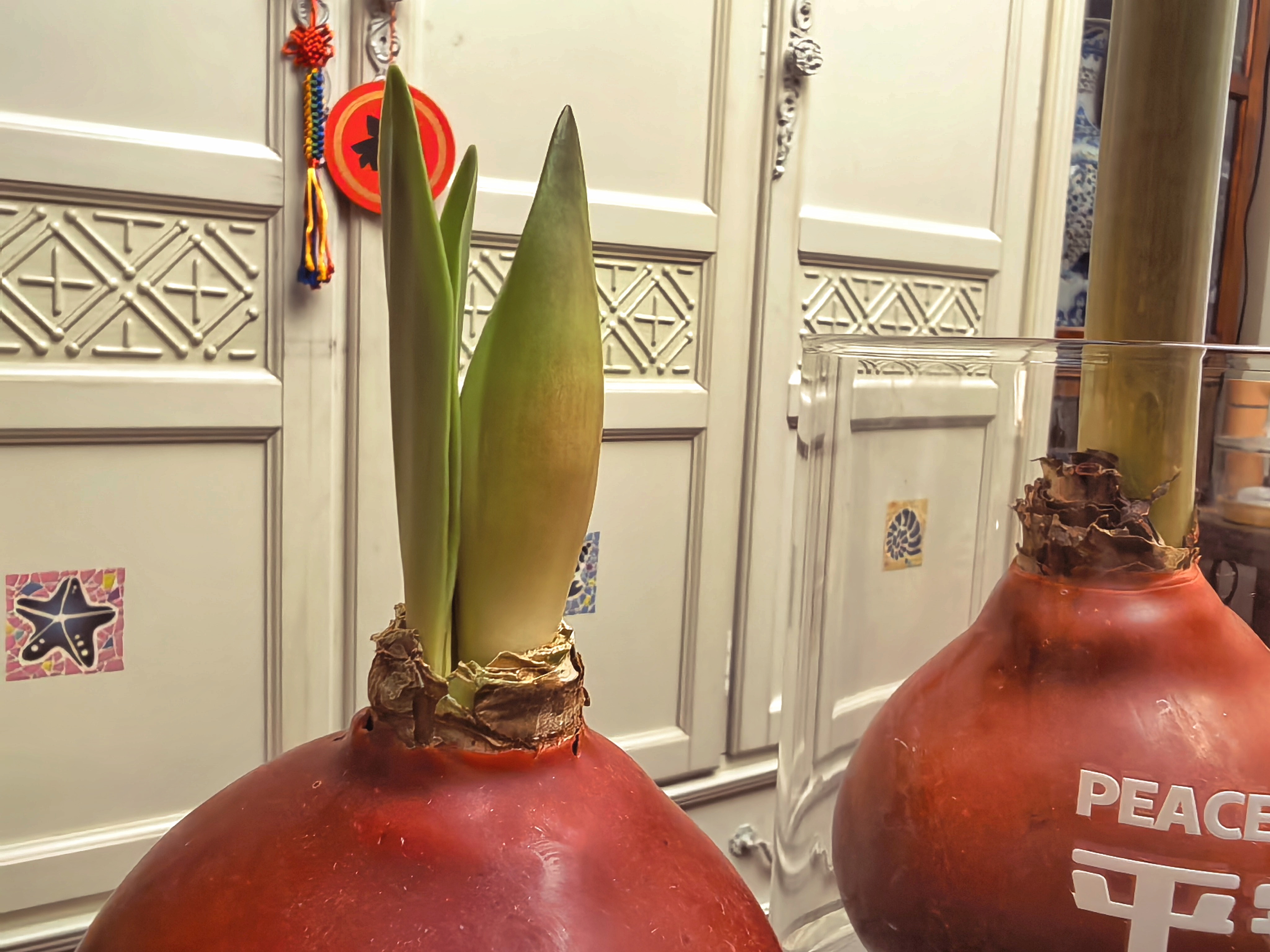 有时候我凑近了看,怀疑那点绿色是不是比昨天高了一点点;有时候又觉得是自己眼花了,它分明还是老样子。我查过,这种蜡封的朱顶红,不用浇水施肥是它的特性,蜡层里封着它全部的养料和水分,它只需要时间 。可等待这件事,最难的不是等,而是不知道要等到什么时候。每天看着它们纹丝不动,我几乎要疑心它们是不是睡着了,或者干脆就是假的。