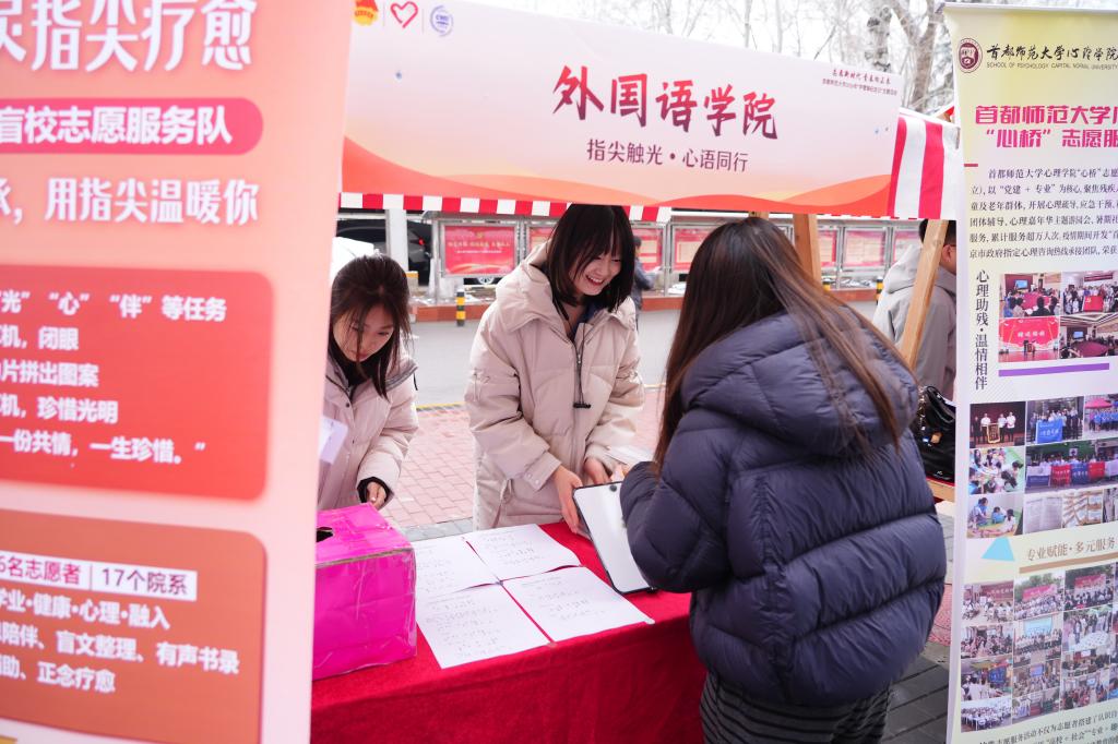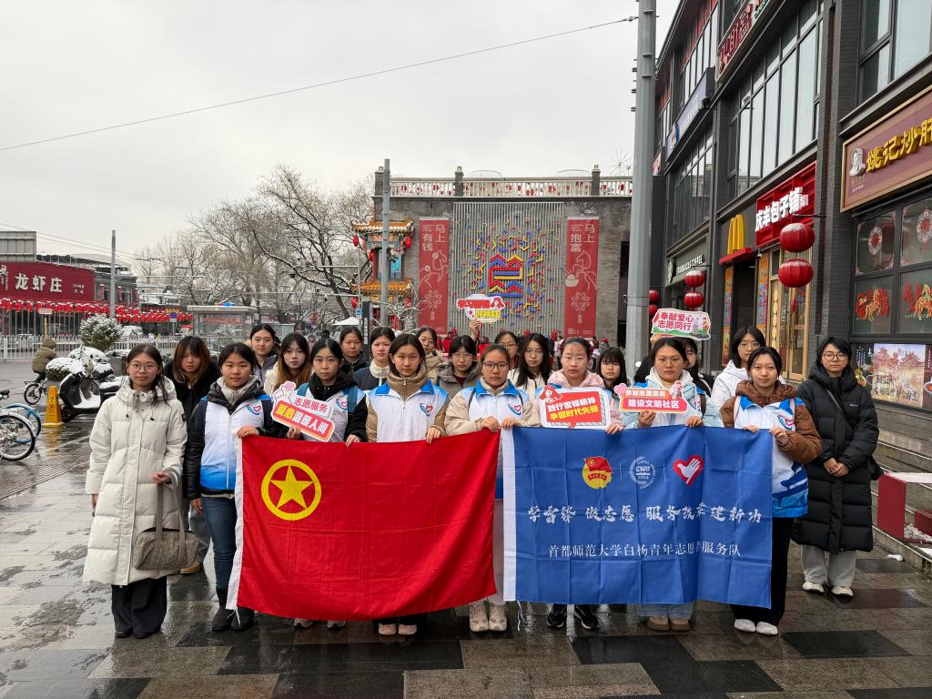 在校内活动如火如荼进行的同时,温暖也在校外延续。42名志愿者分赴北新桥街道与潘庄社区,开展环境清洁、助老帮扶、文明指引等便民服务,将温暖送到居民身边。