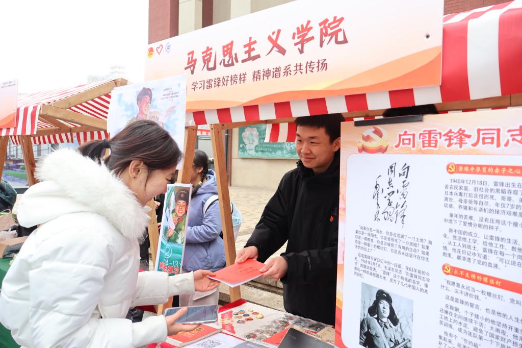 当日中午,校本部学生活动中心前广场化身为热闹的“志愿集市”,来自21个院(系)的品牌志愿项目集体亮相。虽春寒料峭,师生们的热情不减。大家穿梭于各摊位间,在互动体验中感悟雷锋精神,在趣味游戏中了解服务项目。许多志愿服务项目还在现场设点招募,同学们纷纷驻足咨询、扫码报名,让“志之所趋”化为“身之所往”。