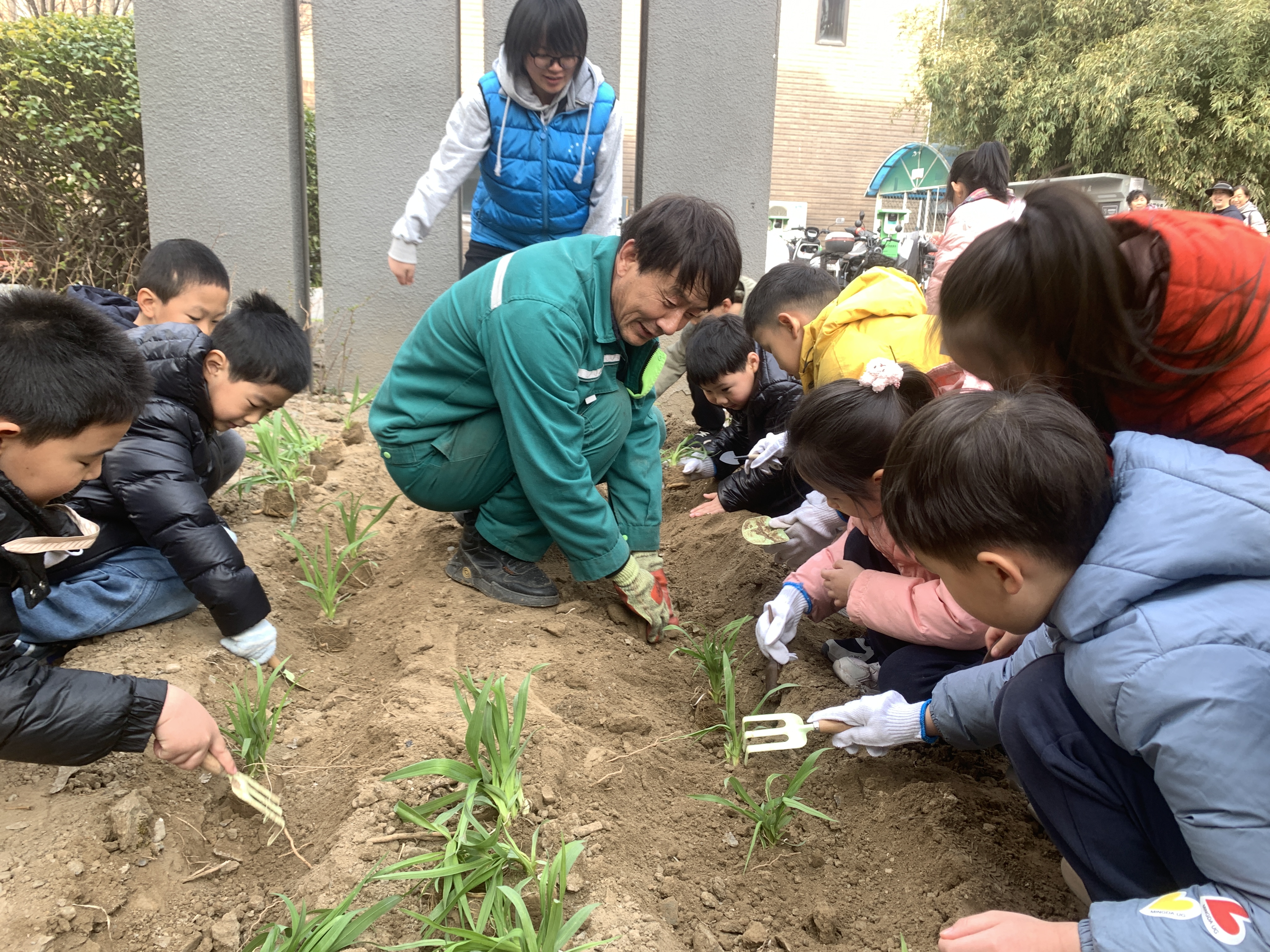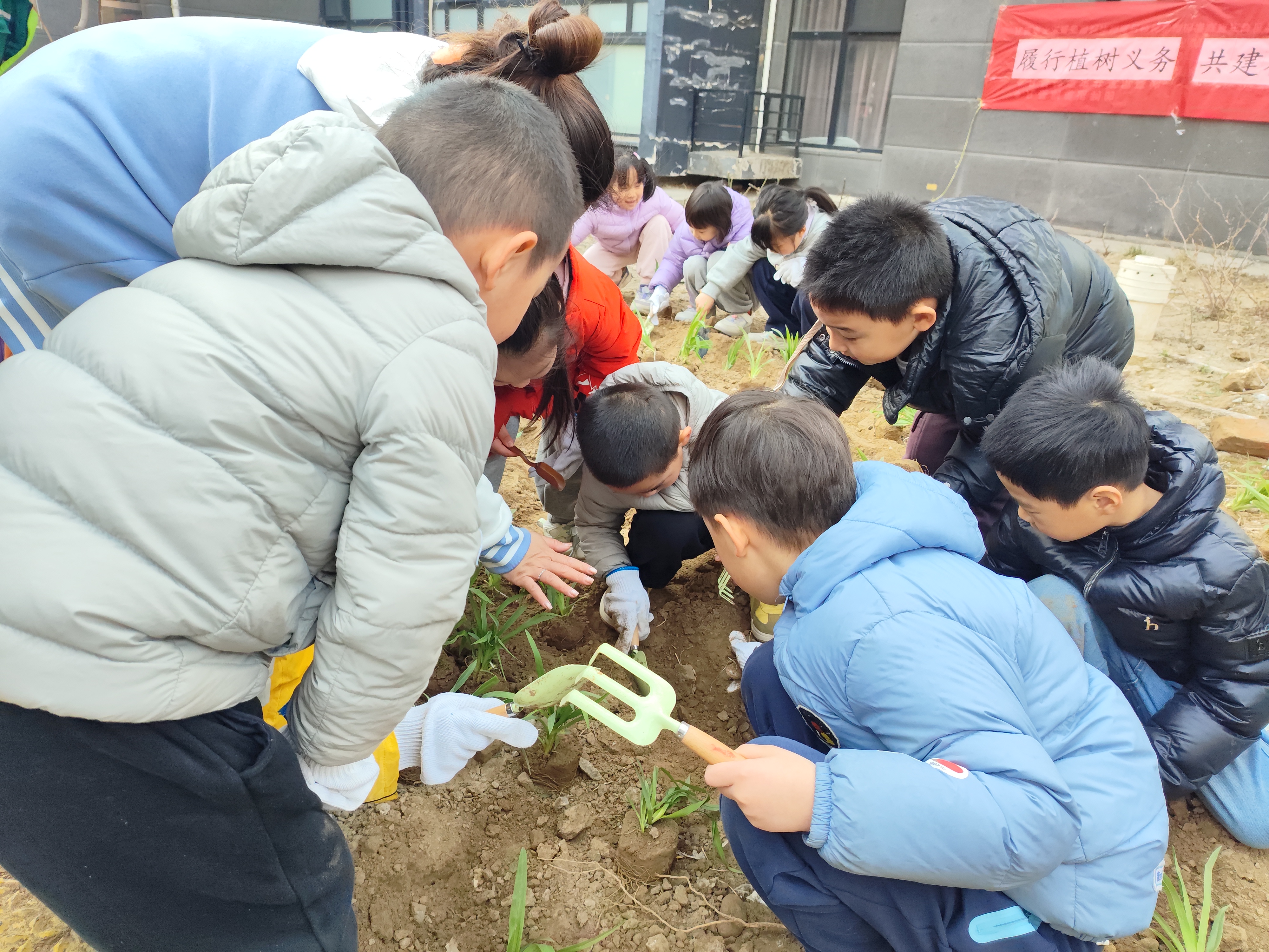 经过一上午的通力合作,100株黄杨、100株萱草齐刷刷在空地上“安家落户”。原本的闲置空地瞬间焕发生机,嫩绿的新苗在春风里轻轻摇曳,和一旁的“礼”字碑刻相映成趣,一幅绿意融融的社区春日图,就这样被大小朋友们亲手绘成。