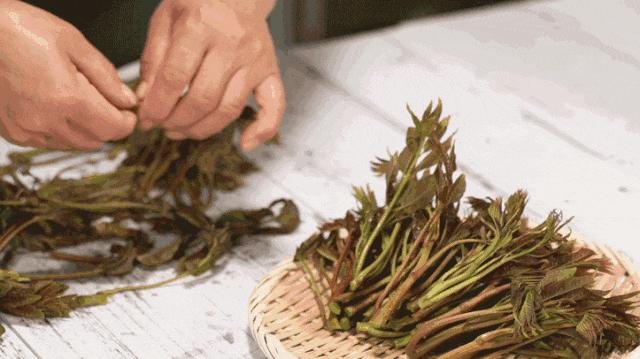 不过这口鲜也是有时限的,老话常说“雨前椿芽嫩如丝,雨后椿芽生木质”,过了谷雨,香椿芽便会迅速生长,叶梗渐渐木质化。