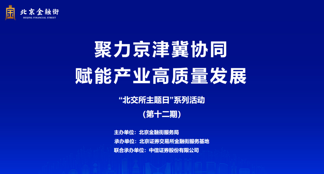 活动由北京金融街服务局主办,北交所金融街服务基地、中信证券股份有限公司联合承办,北京副中心建设集团、亦庄投控、金融街资本、天津国资、泰达控股、河北诚联等20余家京津冀国有企业、民营企业及投资机构参加。