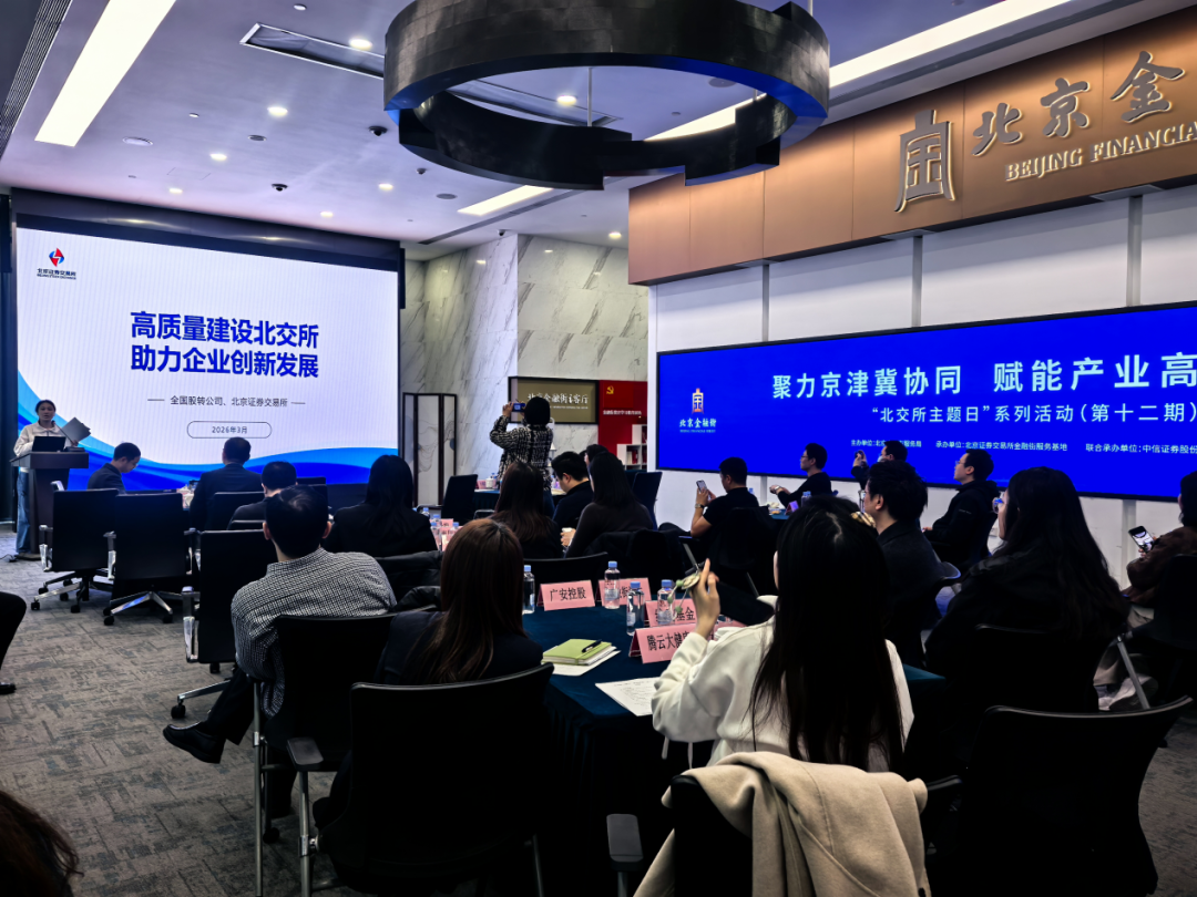3月12日,“北交所主题日”系列活动(第十二期)举办。本次活动围绕习近平总书记在北京考察并看望慰问基层干部群众时提出的“北京要立足城市战略定位和京津冀协同发展”相关指示精神,以“聚力京津冀协同 赋能产业高质量发展”为主题,进一步促进京津冀企业协同发展,助力北交所打造服务创新型中小企业主阵地。