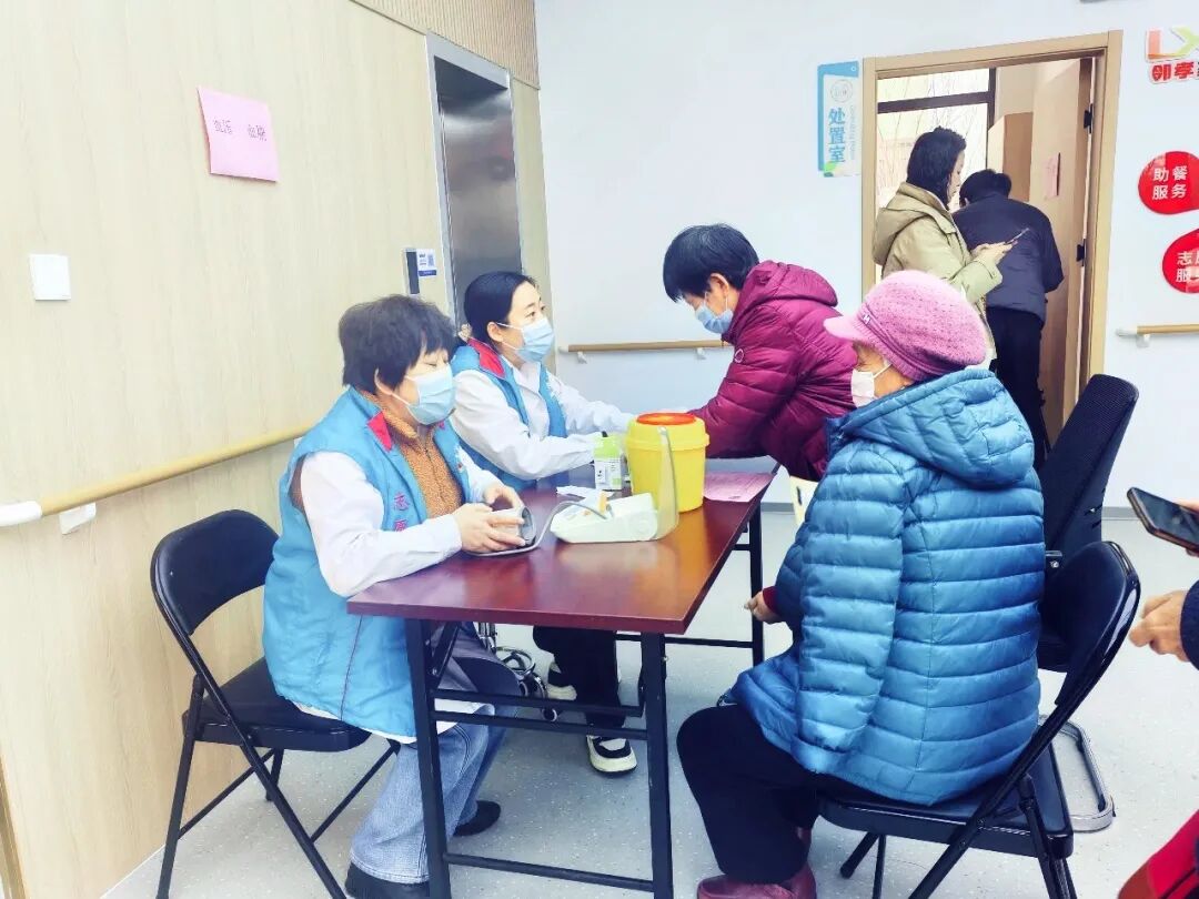 在健康义诊区,医护人员为老年人免费测量血压、血糖,并提供专业健康咨询,用心守护老年人身体健康。