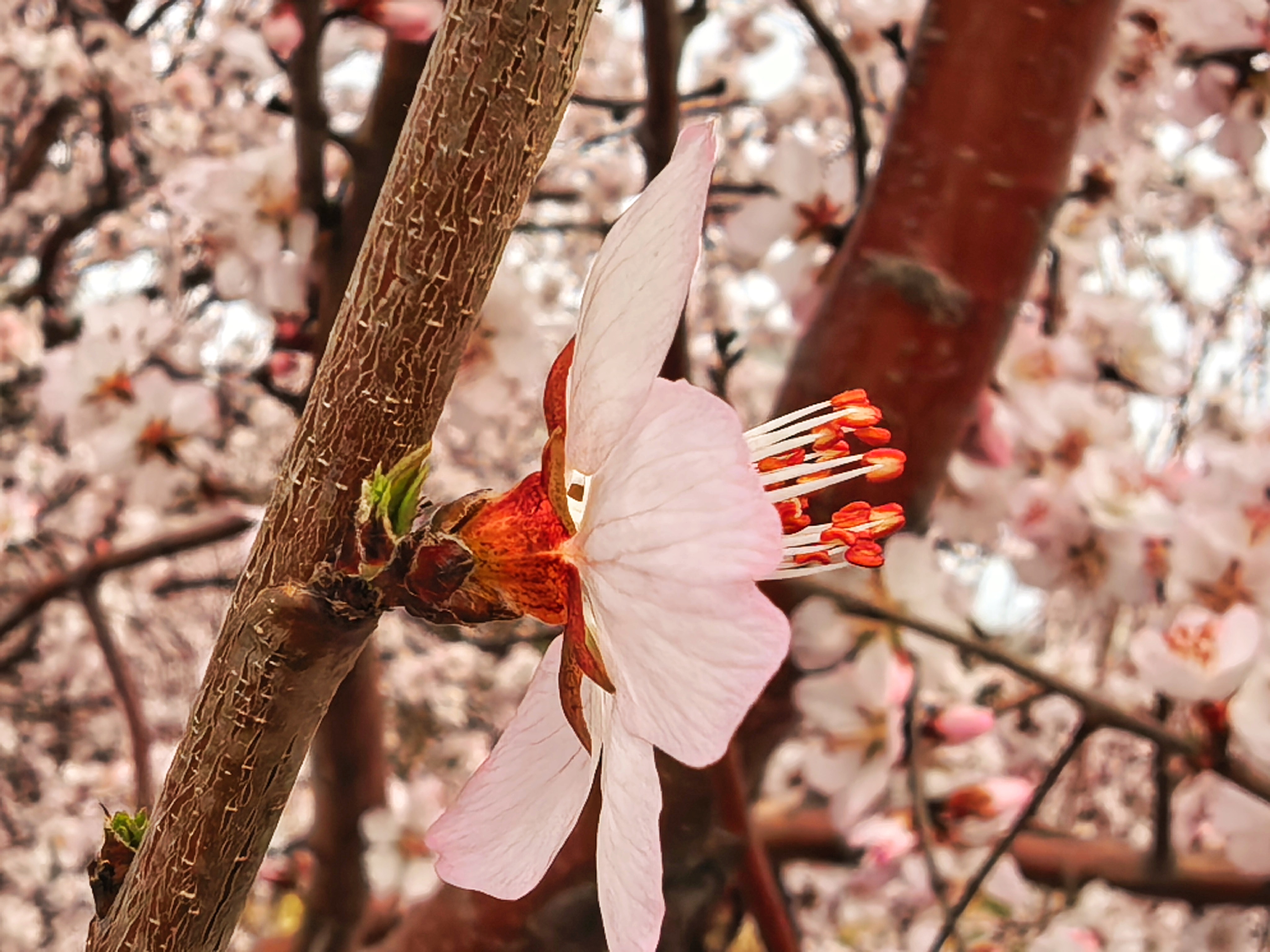 唐人杨衡写春色,有句云:“密添宫柳翠,暗泄路桃红”。一个“暗泄”,说得真好——这桃花的颜色,可不是偷偷泄出来的么?仿佛春天藏了一冬的心事,憋不住,便从枝头悄悄地漫了出来。风过时,花瓣微微地颤,却不肯落,像刚醒的梦,还舍不得散。