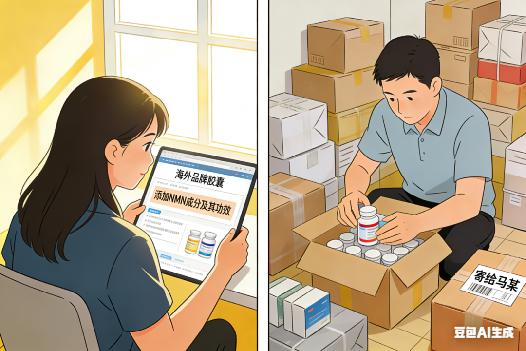 马某在网络平台上看到曹某销售一款海外品牌的胶囊,其中特别添加了热门成分NMN。在相关宣传中,NMN被描述为具有抗衰老、维护心血管健康、提升大脑功能等功效。马某经询问后下单,曹某从境外网站购买后将产品邮寄给马某。
