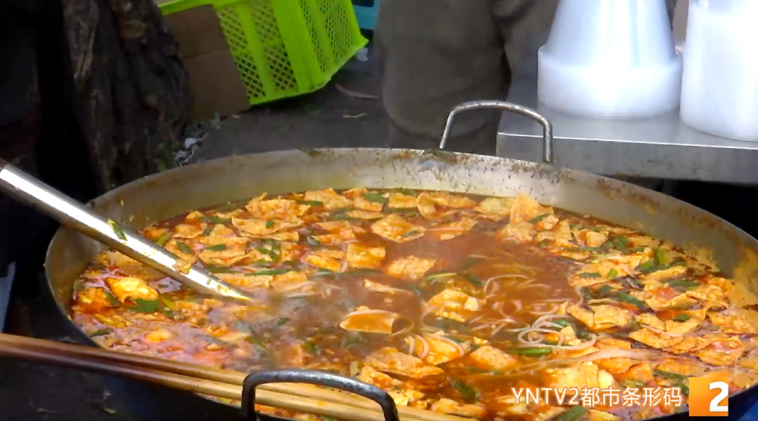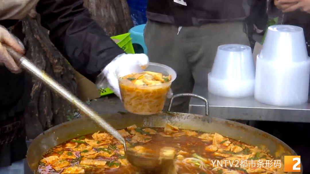 市民:“我是第一次来,官渡旁边村子里的,今天听说有3块一碗的米线,来尝尝是不是正宗的,还可以,味道是对的。这个虽然不是小锅米线是大锅米线,但是吃起来还是板扎的。”