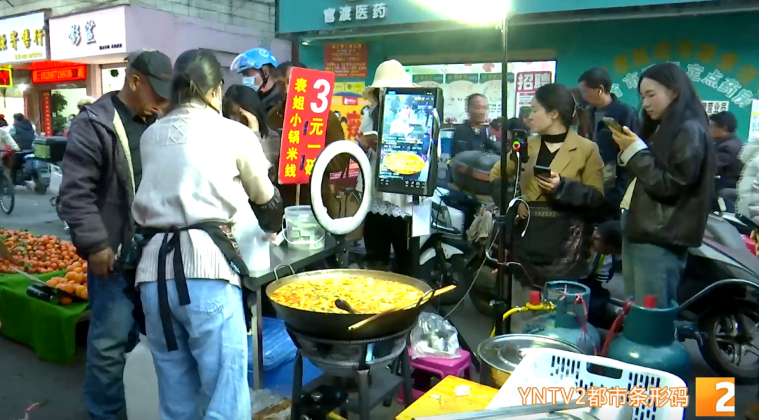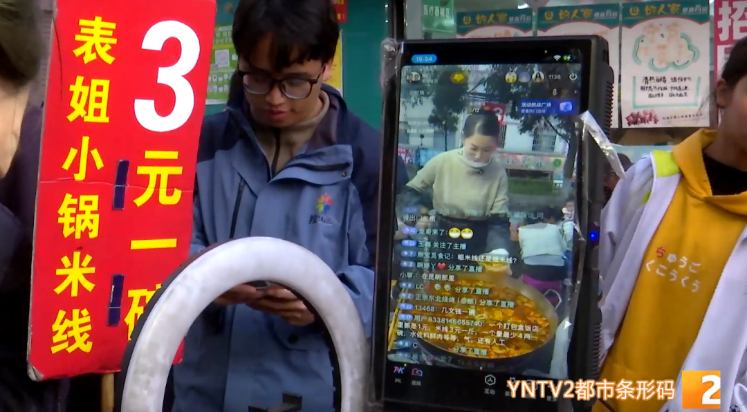 摊主:“对,我们开始就计划好的,也不是说直接来做这个价格,因为我们想现在直播不是还挺火的,就说一边卖米线,一边直播,宣传下我们,让更多人能够吃到我们的米线。”