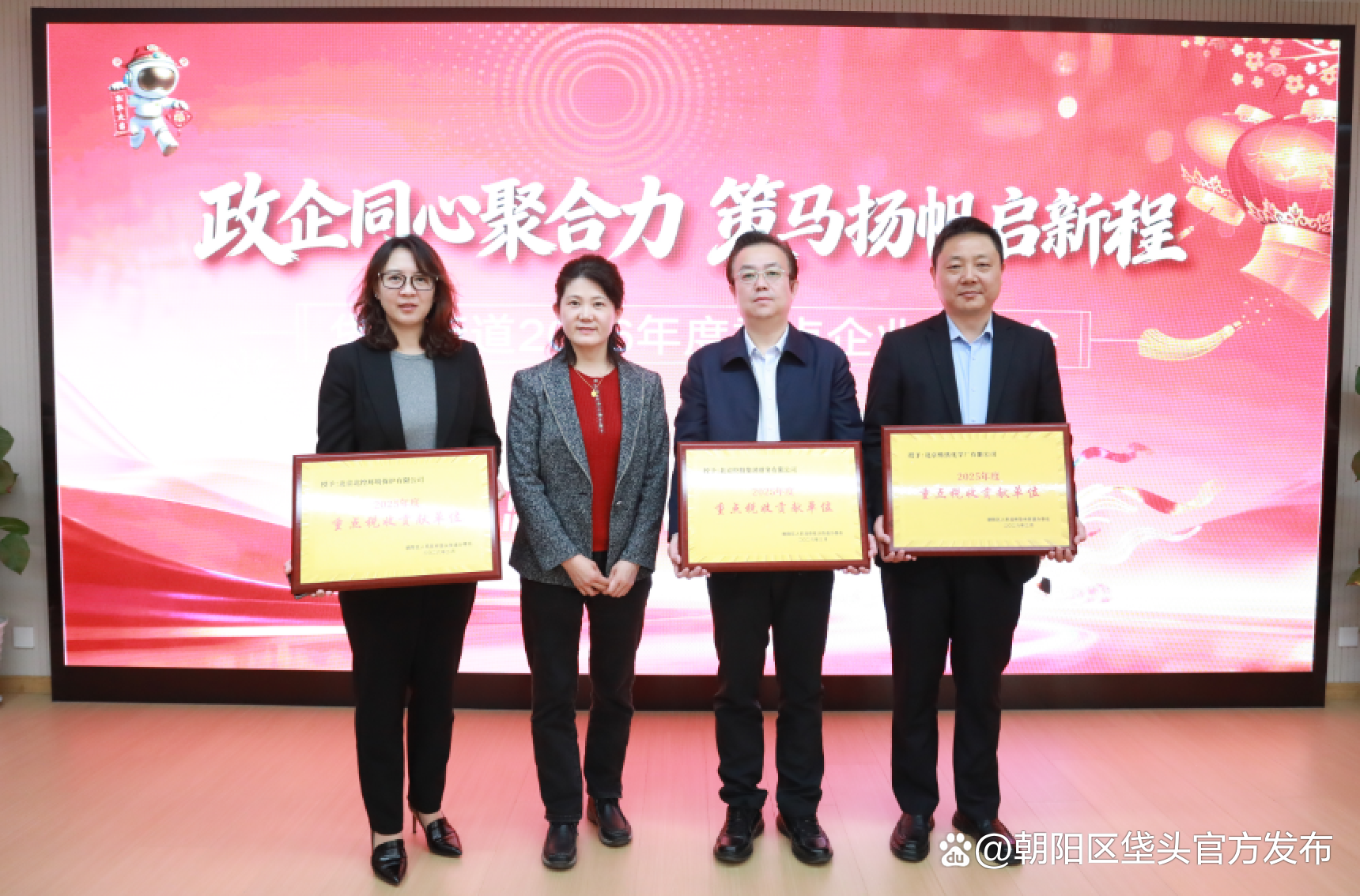 为表彰卓越,激励未来,与会领导隆重颁发“2025年度重点税收贡献企业”与“重点税收潜力企业”奖项,衷心感谢获奖企业以卓越的业绩为辖区发展注入的澎湃动力,希望大家珍惜荣誉,乘势而上,以更高质量的发展,继续为辖区繁荣贡献更大力量!