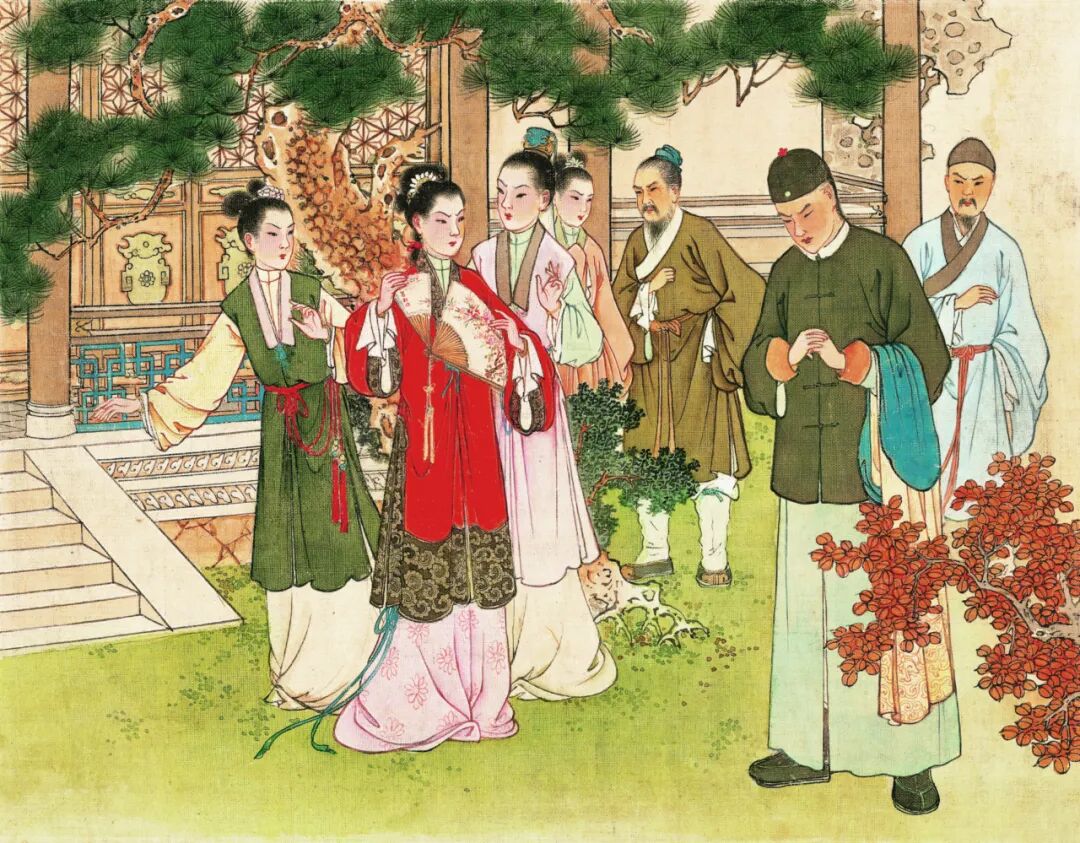 父亲对待连环画的创作态度,一是认真,二是勤奋。他在接到文字脚本后,不仅反复阅读脚本,同时还要找来原著阅读。首先了解作品的创作年代、时代背景,正确把握小说的主题,重点分析人物形象。人物形象是小说的中心,一部小说成就的高低取决于它创造了多少典型人物。只有通过了解书中绘形传神、风姿各异的典型人物,才能艺术地再现人物群像图。还要分析小说的情节艺术,因为故事是通过情节反映人物的思想性格的。同时还注意其中的肖像描写、景物描写、场面描写,因为只有把故事的开端、发展、结局梳理串连,才能形成鲜活的立体人物。除此,还着手收集故事发生时期的人物服饰、道具、器物、兵器、建筑等相关资料。父亲有个习惯,在他的衣兜里经常装着一个红皮小本,无论到哪儿,随时随地把看到的东西记录下来,如寺庙的壁画、建筑、出土的陶俑、某个图案的纹样等。我们长大成人后,发现小时候父母带我和弟弟出去玩的照片中,有很多都是以公园的山水楼阁为背景,俨然一幅幅界画。这些景物大都出现在了他日后的某些创作中。父亲常说:“进行历史题材的连环画创作,应注意服饰、道具的考证,只有平时日积月累,才能掌握丰富的资料。今天记下的东西,很可能在今后的创作中就会用上。”在做了以上充分准备工作的基础上,再对其故事中的主要人物进行造型设计,最终确定其形象和服饰。接着按每幅的文字脚本构思小草图,草图经多次推敲确定后放大成正式画稿,才能磨砚展纸,用毛笔勾线完成。这即是创作由入到出的过程。由此可见完成一本连环画是何等的费时费力。回顾过去,仅1950年一年中,父亲就有三本连环画问世,每本之间仅隔几个月。他工作没有上下班之分,每天作画工作量极大,由此可见其勤奋和努力。