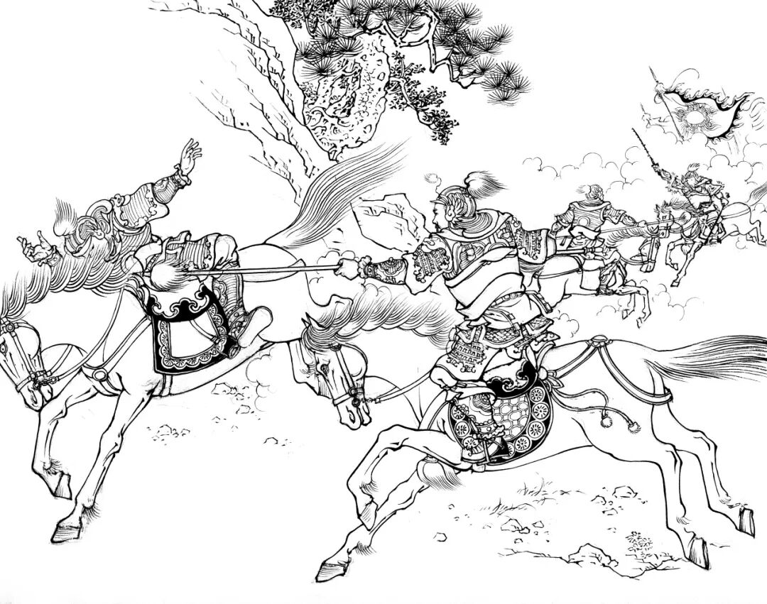 连环画《鲁智深》是父亲连环画的代表作品之一。《水浒》故事中描写了众多阶级地位不同、遭遇不同的英雄人物。其中,鲁智深革命性最强,也是最能反映主题的人物之一。鲁提辖拳打镇关西、大闹五台山、大闹桃花村、倒拔垂杨柳的生动画面,把一个挺身助人、疾恶如仇、刚直不阿、粗犷豪放的鲁智深呈现在广大读者面前,使我们深刻领会到他塑造人物的卓越才能。父亲在完成《鲁智深》连环画之后,又夜以继日地完成了《水浒传》连环画库之十五《高唐州》、之二十五《两破童贯》的连环画创作。《两破童贯》从童贯挂帅征讨,到梁山泊十面埋伏、宋公明两赢童贯,整个故事76幅。其中身披甲胄、手执兵刃的刀马人物,驰骋疆场攻杀战守的战斗场面有一半以上。这种场面在《高唐州》中也有数十幅。这也正是我们所称道的骑马打仗的小人书,今天擅长此道的画家已日见稀少。由此可见,父亲在刀马人物的研究中也是下了很大功夫并卓有成效的。20世纪60年代,他在总结创作心得的基础上撰写技法书《怎样画刀马人物》,毫无保留地把自己的绘画经验公诸于世。此书受到欢迎并多次再版。《水浒传》连环画出版后,受到广大群众的喜爱,在连环画艺术宝库中占有重要的位置。“文革”之后,应广大连环画爱好者的要求,人民美术出版社多次再版了《水浒传》连环画。