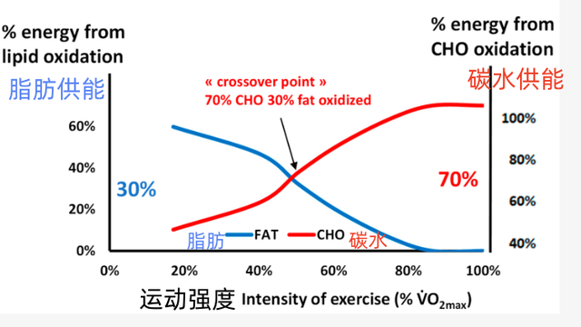 如果想燃脂更多,除了时间,还要关注强度。2022年,发表在国际期刊《营养素》上的研究发现,身体供能用碳水更多,还是脂肪更多,跟运动强度有关。运动越激烈,碳水供能的占比就越高,而强度低一些的运动,脂肪供能比反而会更高一些。