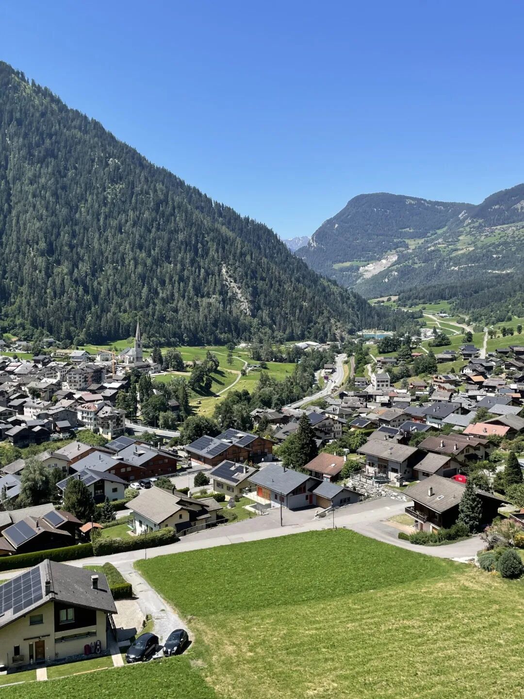 离开蒙特勒,列车由湖畔转入山谷,抵达马蒂尼(Martigny)换乘。马蒂尼也是进入意大利与法国的区域交通枢纽。要去韦城,则在此换乘支线列车,深入巴涅山谷的小村庄勒沙布勒(Le Châble),韦城“四山谷滑雪区”的支线列车终点站。然后再换乘公交,经唯一连接外界的盘山公路,或乘坐缆车在十分钟内爬升九百米,才能最终抵达位于半山腰的韦城。
