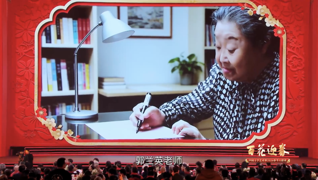 郭兰英是中国近现代音乐史上民族歌剧表演艺术和民族声乐艺术的杰出代表。她以不懈的努力与探索,为中国民族歌剧表演体系的建立及民族歌唱艺术的发展作出了开拓性贡献。在近日举办的“百花迎春——中国文学艺术界2026春节大联欢”上,96岁高龄的郭兰英致信表达了对文艺事业的深情祝福,写下了“我将永远为人民歌唱”的真挚话语。