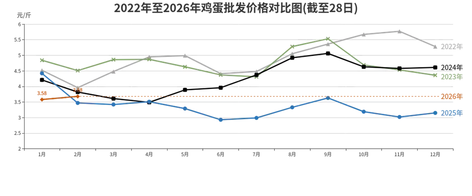 春节备货需求支撑,鸡蛋价格小幅上涨。2月份鸡蛋批发价格月内整体呈前高后低走势,春节后以消化节前库存为主,月末较月初降幅明显,累计降幅达25.84%,但月环比较1月份价格仍小幅上涨。