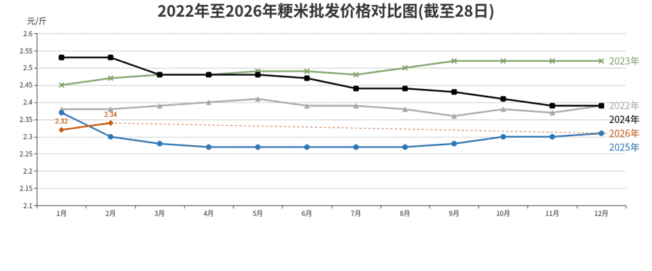 受节日周期影响,粮食批发价格微幅波动,均处于近五年次低位。
