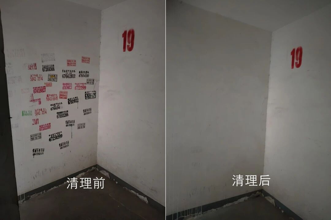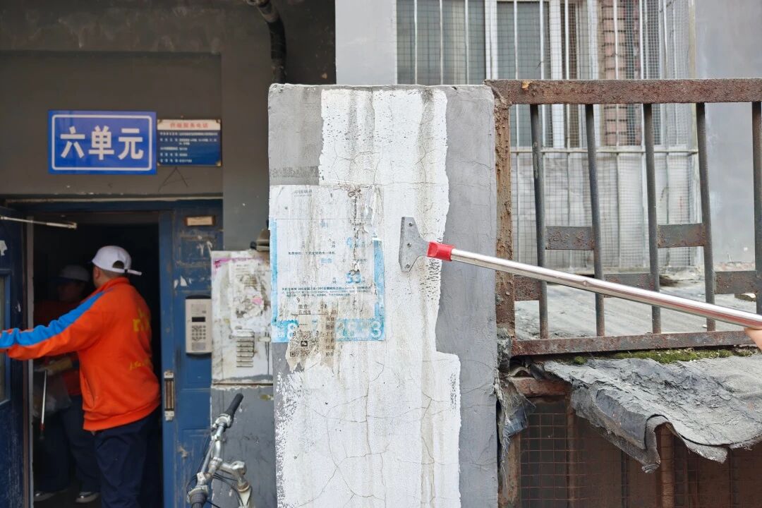 躲在楼道阴影里的蜘蛛网、卡在围栏的枯枝落叶、贴满单元门的小广告、从阳台的杂物堆……