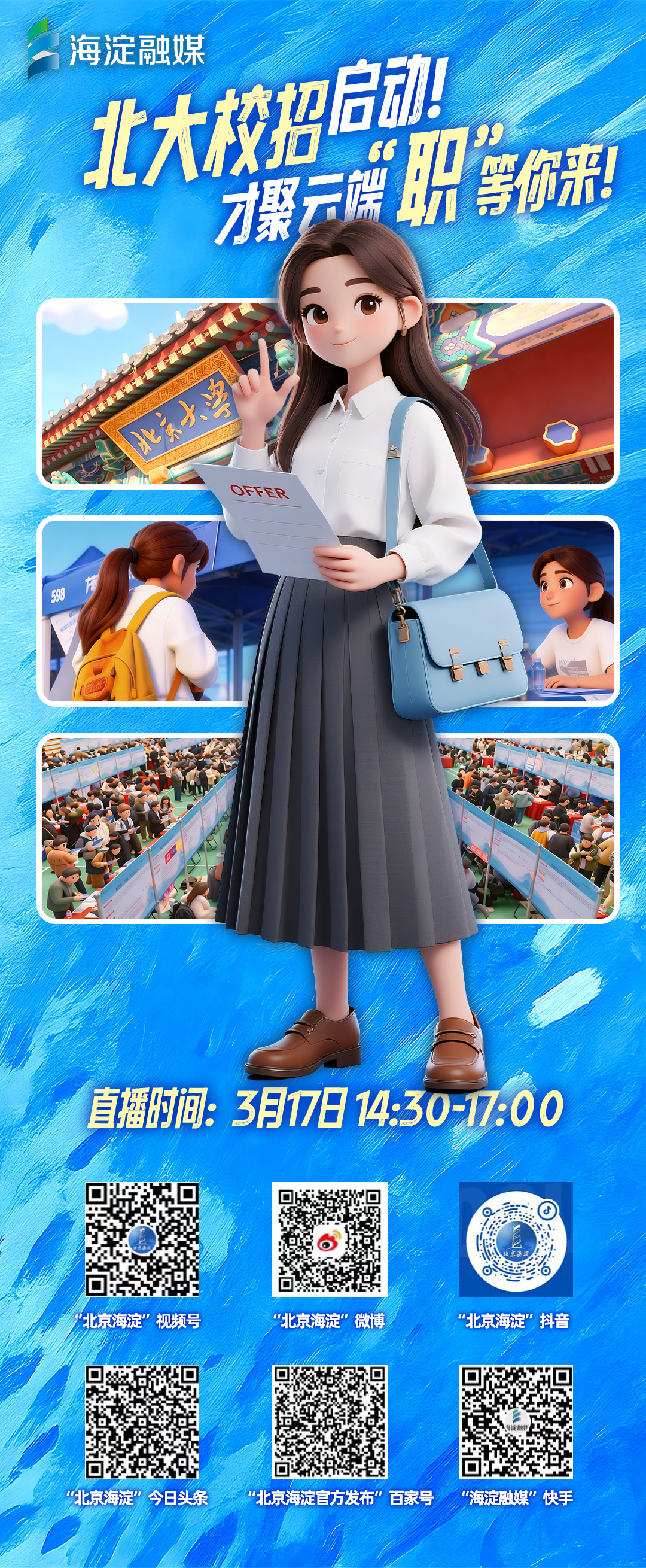 线上“职”播间:海淀融媒多平台同步直播,150分钟超长直播陪伴招聘全流程,精选四方继保、开源芯片、英博数科、农芯科技、汉王科技、摩尔线程6家重点企业直播间放岗位,详细解读岗位信息、薪资福利、应聘要求,“职”播间实时互动答疑,足不出户就能对接优质企业,精准锁定心仪岗位。