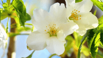 蓝天映衬着繁花