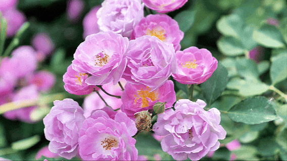 盛开的月季层层叠叠、色彩缤纷
