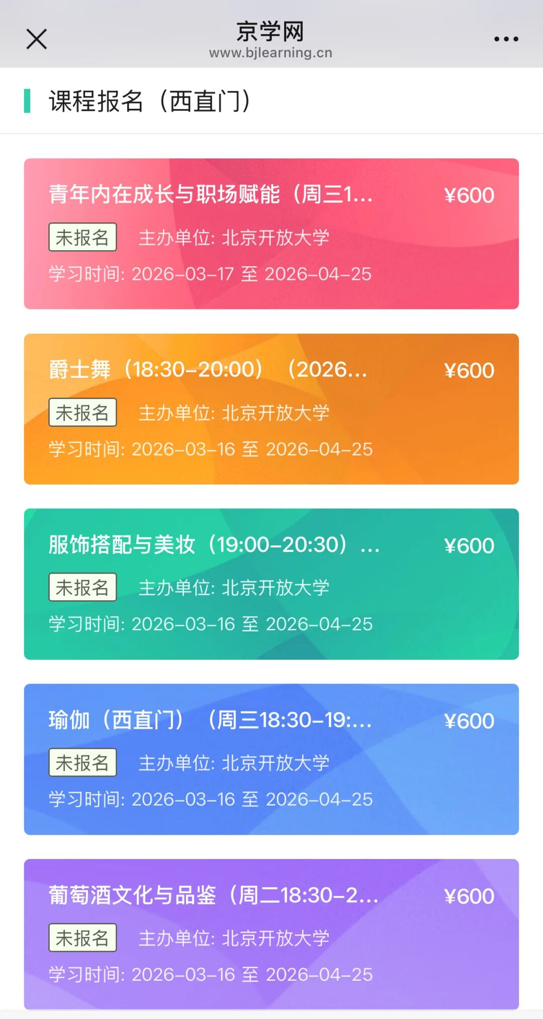 为了让学习触手可及,“京学”夜校在全市多区设立办学点,覆盖东城、西城、朝阳、海淀、石景山、通州等地。市民只需关注 “京学”微信服务号,即可轻松实现一键查询最近教学点、按行政区或商圈筛选心仪校区、浏览详细课程介绍并完成报名,真正实现“在家门口上学”。