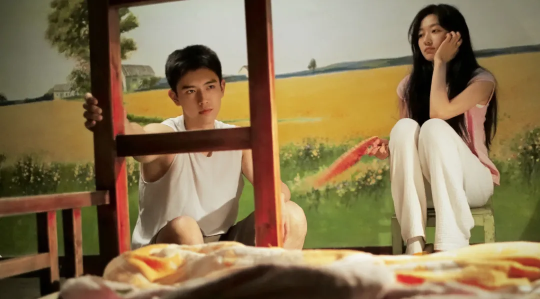 二人共用一张小桌:一边是费霓摊开的课本与草稿纸,另一边是方穆扬用树枝在地上临摹她的侧影。在费霓因为一道数学题绞尽脑汁、抓耳挠腮时,方穆扬虽然同样不懂,却凭着本能温柔地给她递上一杯温水,用“别着急,慢慢想”驱散她的焦躁。在方穆扬因为画得不好而情绪低落,费霓没有取笑、指责他,而是用温情捡起画笔,用一句“不管画得好不好,只要喜欢,就值得坚持”帮他坚定对艺术的坚守,为他找回记忆、重拾自我注入重要动力。这张桌子成了两种生命的交汇点——一个是通往未来的理性跋涉,另一个是对存在本身的感性确认。这不是牺牲,也不是妥协,而是一种生活的协奏曲,是一种在物质匮乏中依然坚持精神对位的审美姿态。