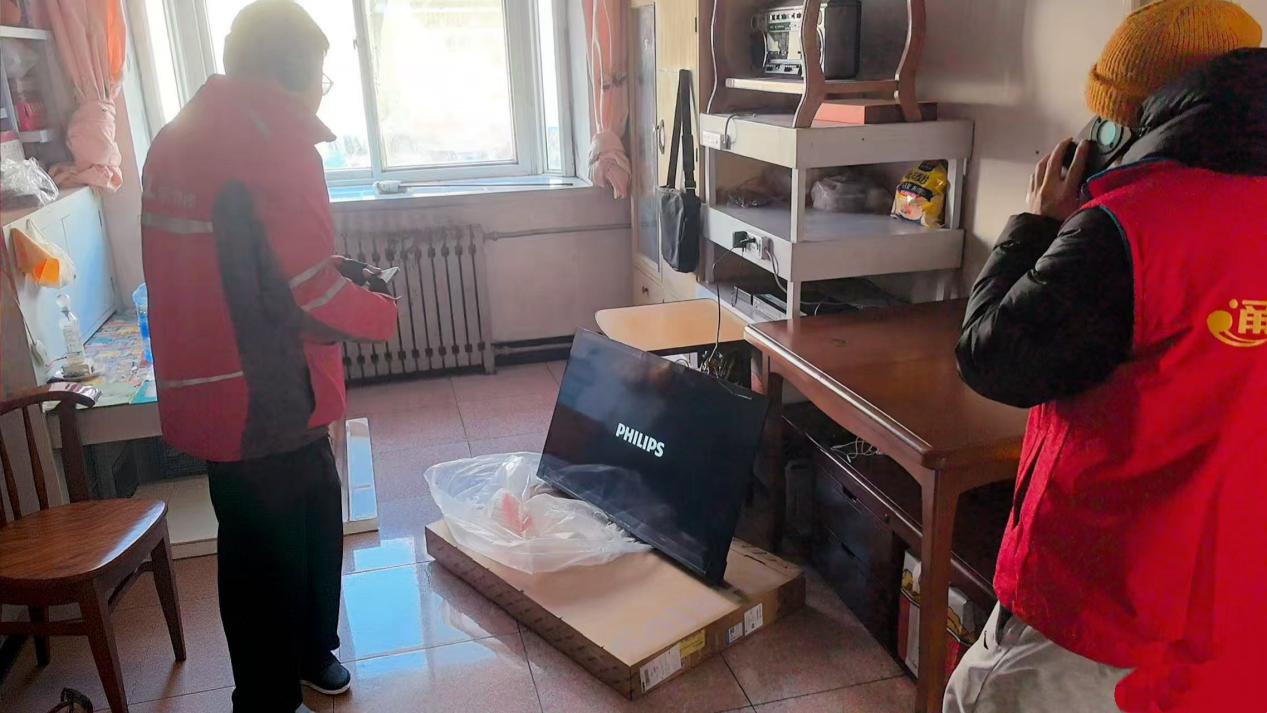自那以后,服务站站长和社工们便将两位老人的冷暖挂在心上。日常走访中,大家总会抽时间到老人家中陪他们聊聊天、解解闷,慢慢引导老人走出情绪低谷。为了帮老人转移注意力、丰富闲暇生活,工作人员主动协助老人购买电视,不仅帮忙送货上门,还联系歌华有线工作人员上门调试,手把手教会老人开关电视、切换频道。如今,电视里的热闹画面,成了两位老人驱散孤独、感受温暖的陪伴。