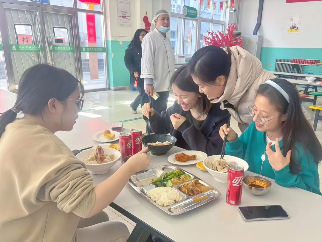 我带着惆怅走向食堂,本以为只是一顿寻常的早餐,推开门的瞬间,感觉与温暖撞了个满怀。食堂里张灯结彩,红彤彤的福字耀眼,老师们全都早早地等候在这里,笑着朝我们招手:“快来,饺子刚煮好!”