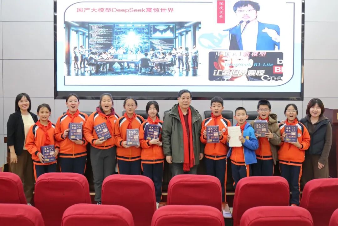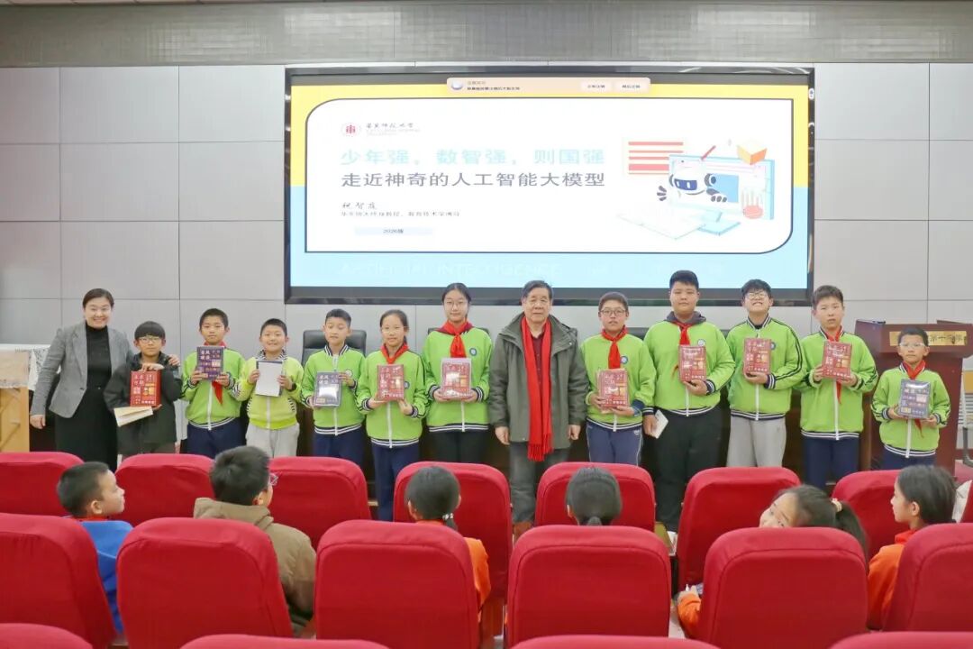 3月16日下午,北京市第十中学教育集团特邀华东师范大学终身教授、知名教育技术专家祝智庭,为小学贯通班的同学们带来了一场别开生面的《青少年AI教育实践课程》讲座。丰台区教委副主任(主持工作)、北京市第十中学教育集团校长曲兆军,北京市第十中学执行校长王玲,卢沟桥小学校长张利民、主任胡雪,北宫小学副校长王佳妮、主任马岩琦及集团成员校的多位骨干教师亲临现场,与孩子们共同聆听这场充满智慧与趣味的AI启蒙盛宴。活动由小学贯通班主管校长宋瑞主持。