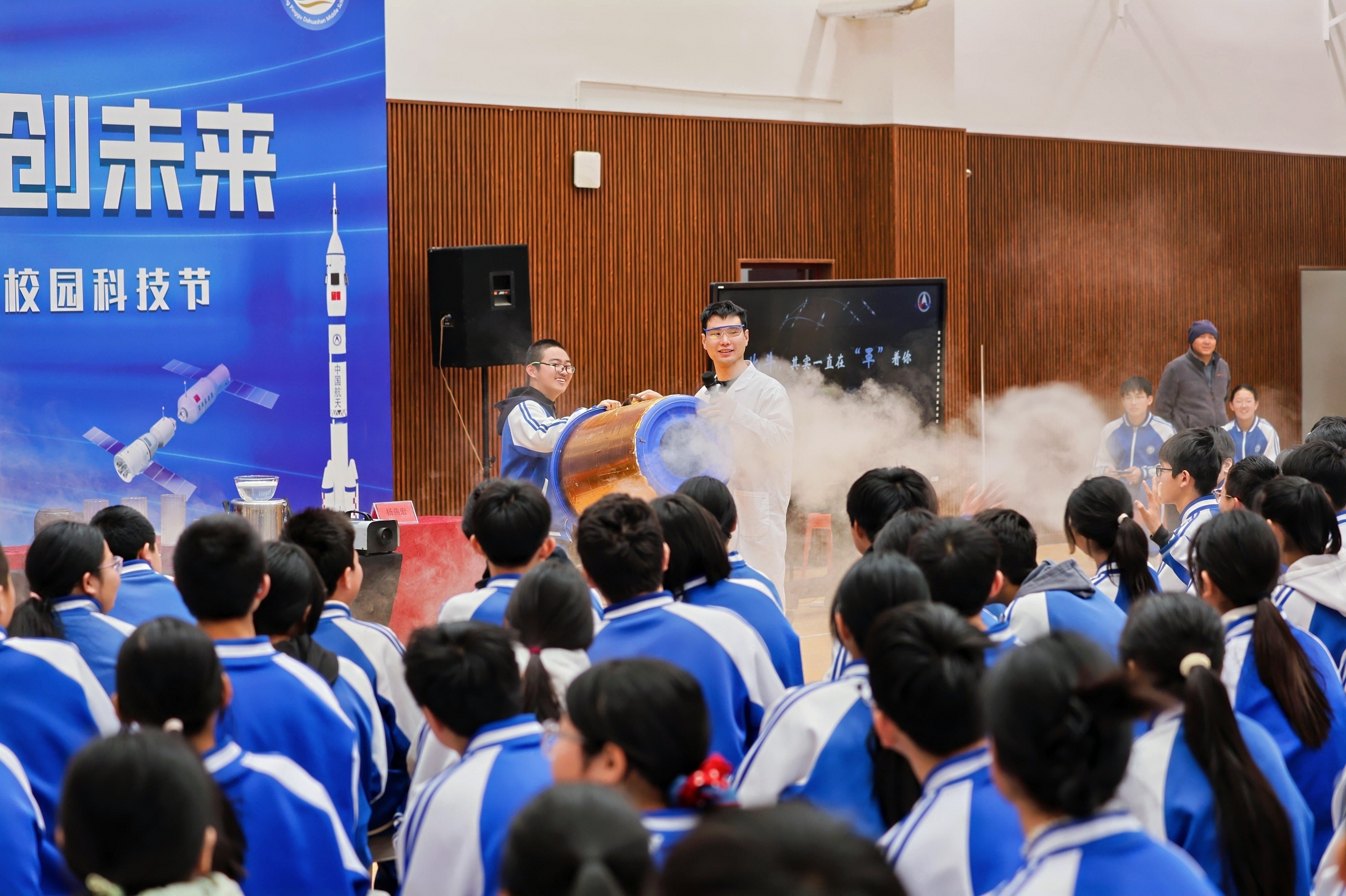 近日,北京市平谷区大华山中学第二届“联结空天,智创未来”校园科技节正式启幕,中国航天科工二院航天工程师吴鹏被聘为名誉科技副校长。此次活动由大华山中学与北京汇文中学朝阳垂杨柳分校联合举办,以“城乡手拉手”模式,为京郊学子带来一场集展示、体验、科普于一体的科技盛宴,点燃青少年探索创新的热情。