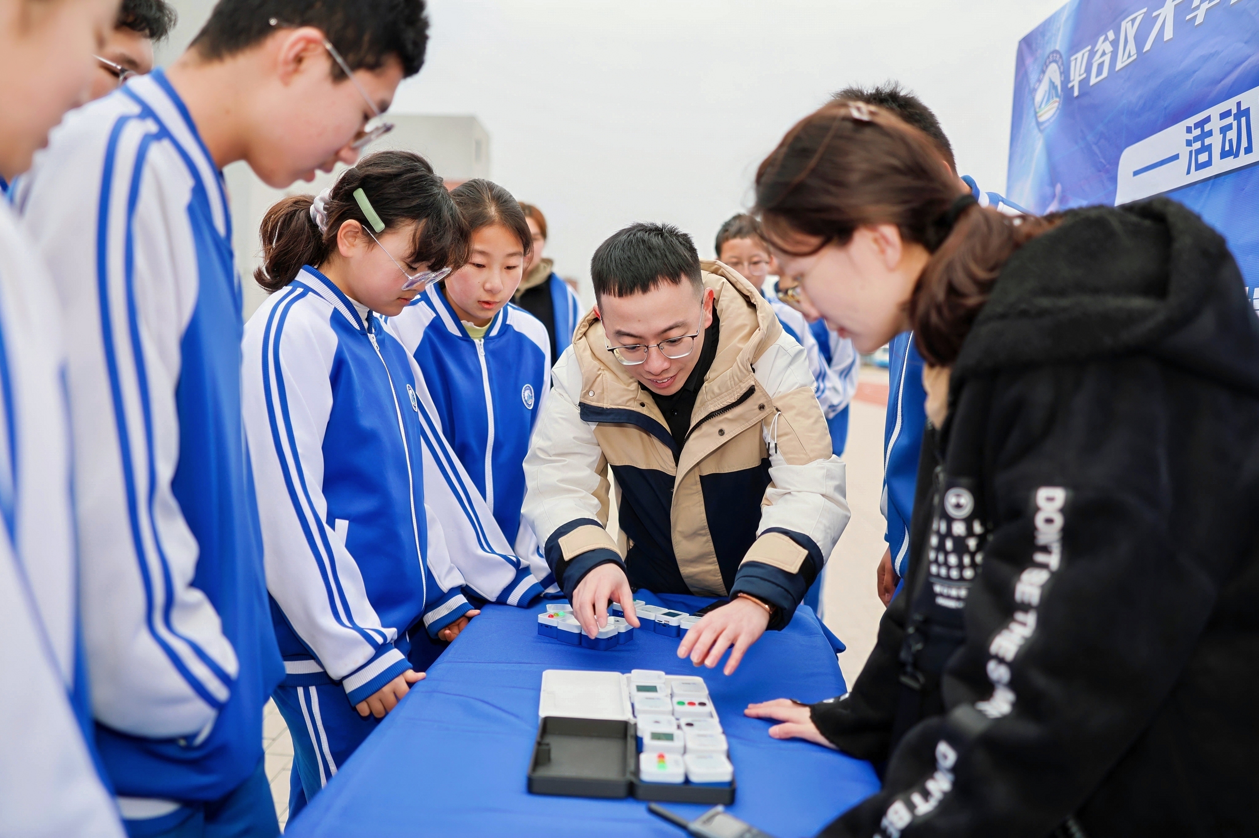 活动期间,平谷区教委副主任平玉新与学生亲切交流,认真倾听大家对兴趣社团发展的意见与建议,并对学生提出的增设基础编程课的需求予以高度关注。