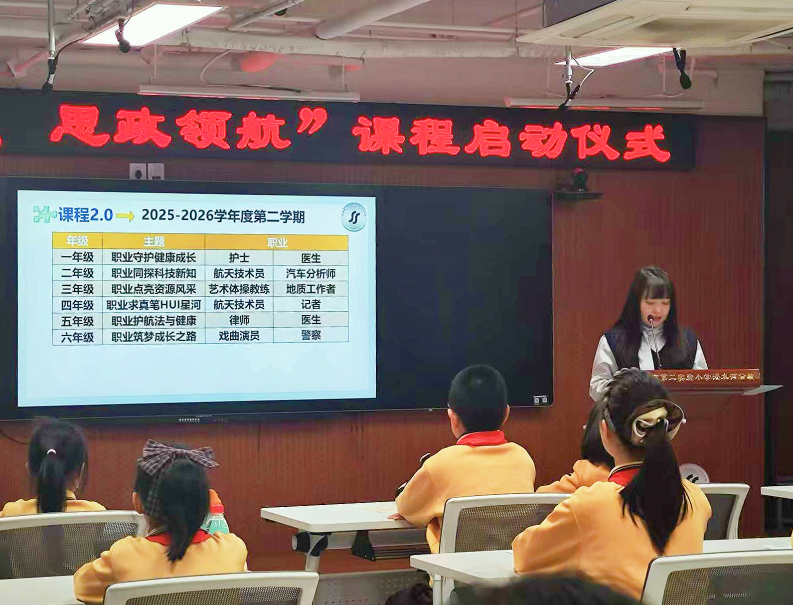 发布会上,学校课程项目负责人、教学副主任付蕾对本学期课程设计进行全面解读。她介绍,这学期的课程设计既注重劳动实践、职业探索中的身体力行,让学生在研学实践、动手操作中增强体质,又关注学生心理健康与全面发展——在职业定位上充分尊重孩子们的探索意愿,因此新增心理医生、艺术体操教练、法律工作者、航天技术工作者等多元方向,通过职业梦想分享、小组实践合作等环节,培养学生积极向上的心理品质。