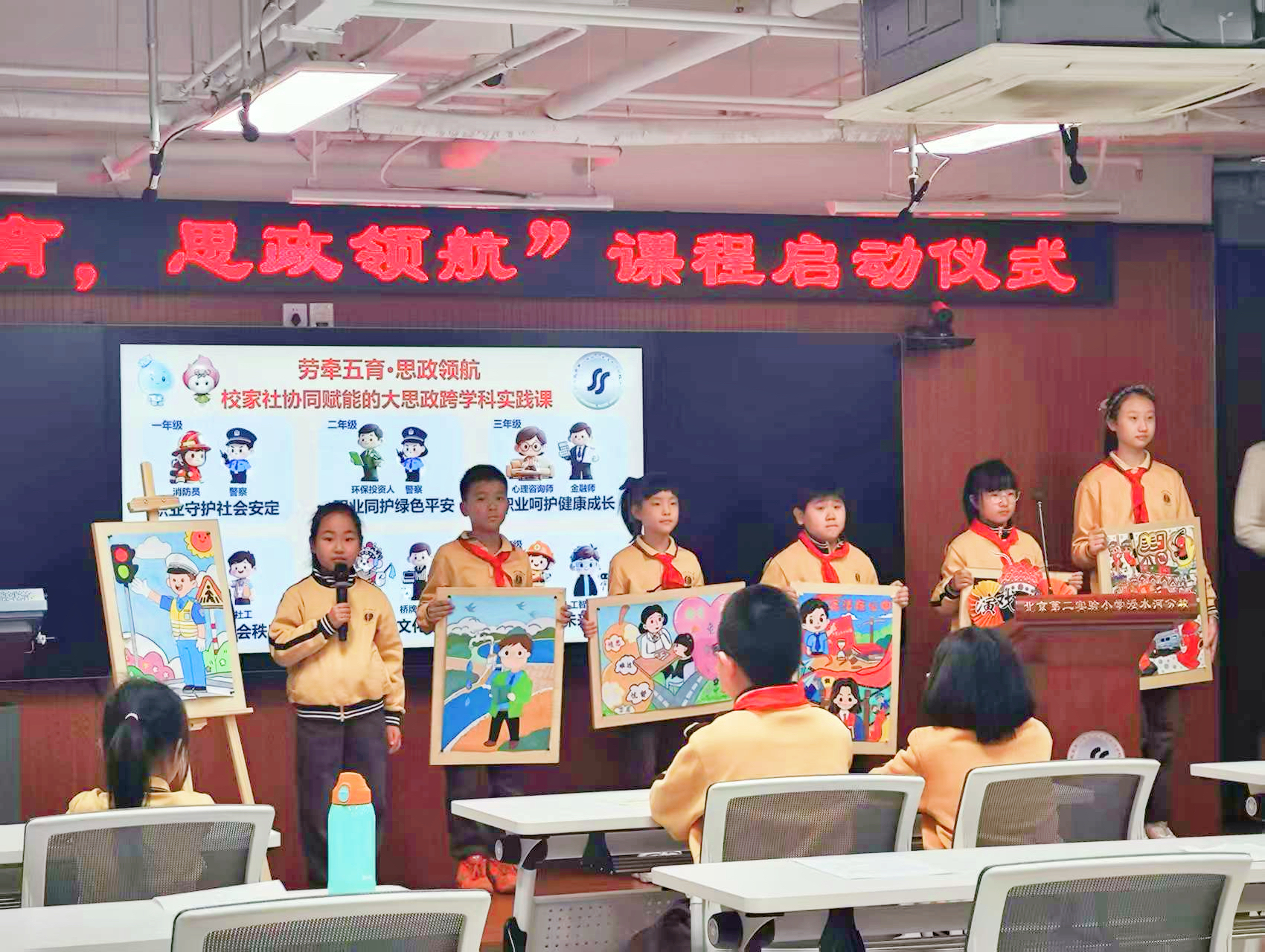 12位来自不同行业的家长受邀作为职业导师,将依据学校课程安排,在接下来的这个学期,带领学生们认识不同职业角色,并走进工作场地开展实践主题活动。3月16日,北京第二实验小学涭水河分校举办“劳牵五育 思政领航”校本特色课程发布会,发布2.0版劳育融合育人体系,并同步举行校家社协同赋能的大思政跨学科实践课学期启动仪式。会议现场,12位职业导师向师生介绍了职业内容和课程计划。