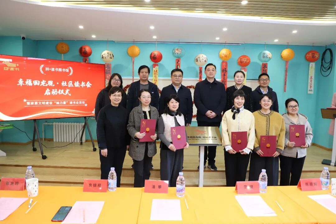 在热烈的掌声中,区委宣传部副部长潘攀与回龙观街道工委书记廖键共同为“幸福回龙观・社区读书会”揭牌,区图书馆党委书记、馆长陈丽娟与回龙观街道办事处副主任张光玲共同为五大读书会子品牌及领读人团队授牌,正式构建“1个主品牌+ 5个子品牌”的阅读推广矩阵,涵盖“小小朗读者”“她力量”“银发悦读会”“艺韵读书会”“家庭共读会”,精准覆盖全年龄段、全群体居民阅读需求。