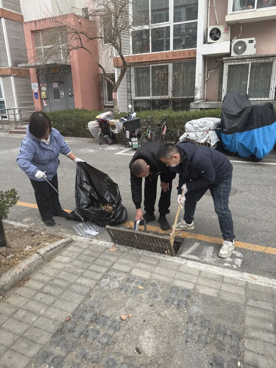 为切实保障居民出行安全,社区主动担当、靠前作为,联合街道相关科室、兄弟社区志愿者及共建单位北京医大中西医结合医院党支部,共同组建了一支志愿服务队。现场,大家按照网格分工,分片包干,用铁钩掀开篦子,清理板结淤泥与杂物,并及时将垃圾清运干净,不放过一处死角、不遗漏一处隐患。