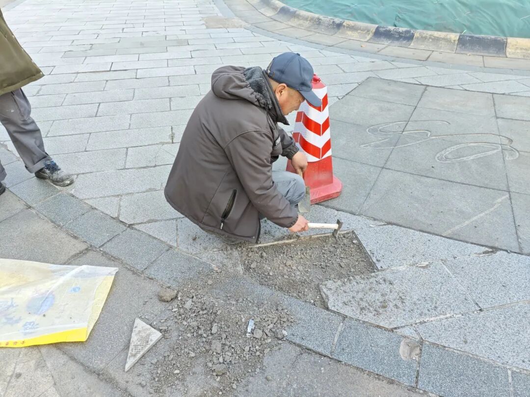维修过程中,工作人员严格按照标准,对松动的地砖重新铺设压实,对破损缺失的部分进行更换填补,力求平整牢固。从隐患排查到快速处置,再到精细修复,一系列务实举措把民生小事落到实处,织密了社区出行安全网,让居民在日常生活中感受到实实在在的安心与温暖。